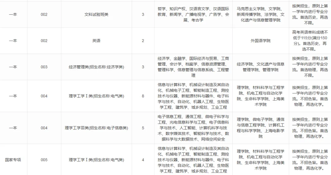 上海大学学科门类齐全,涵盖哲学、经济学、法学、教育学、文学、历史学、理学、工学、医学、管理学、艺术学、交叉学科等学科门类。现设有31个学院,86个本科招生专业,28个一级学科博士学位授权点、9个自主设置交叉学科博士点,42个一级学科硕士学位授权点(含一级学科博士学位授权点)、1个二级学科硕士学位授权点(一级学科未覆盖)、7个博士专业学位类别、30个硕士专业学位类别(含博士专业学位授权点),24个博士后科研流动站。拥有3个全国重点实验室、1个省部共建国家重点实验室培育基地、1个创新人才培养示范基地、1个国家工程实验室(共建)等。