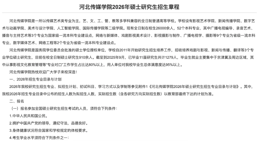 广播电视考研 | 2026年河北传媒学院广播电视硕士招生简章、专业目录