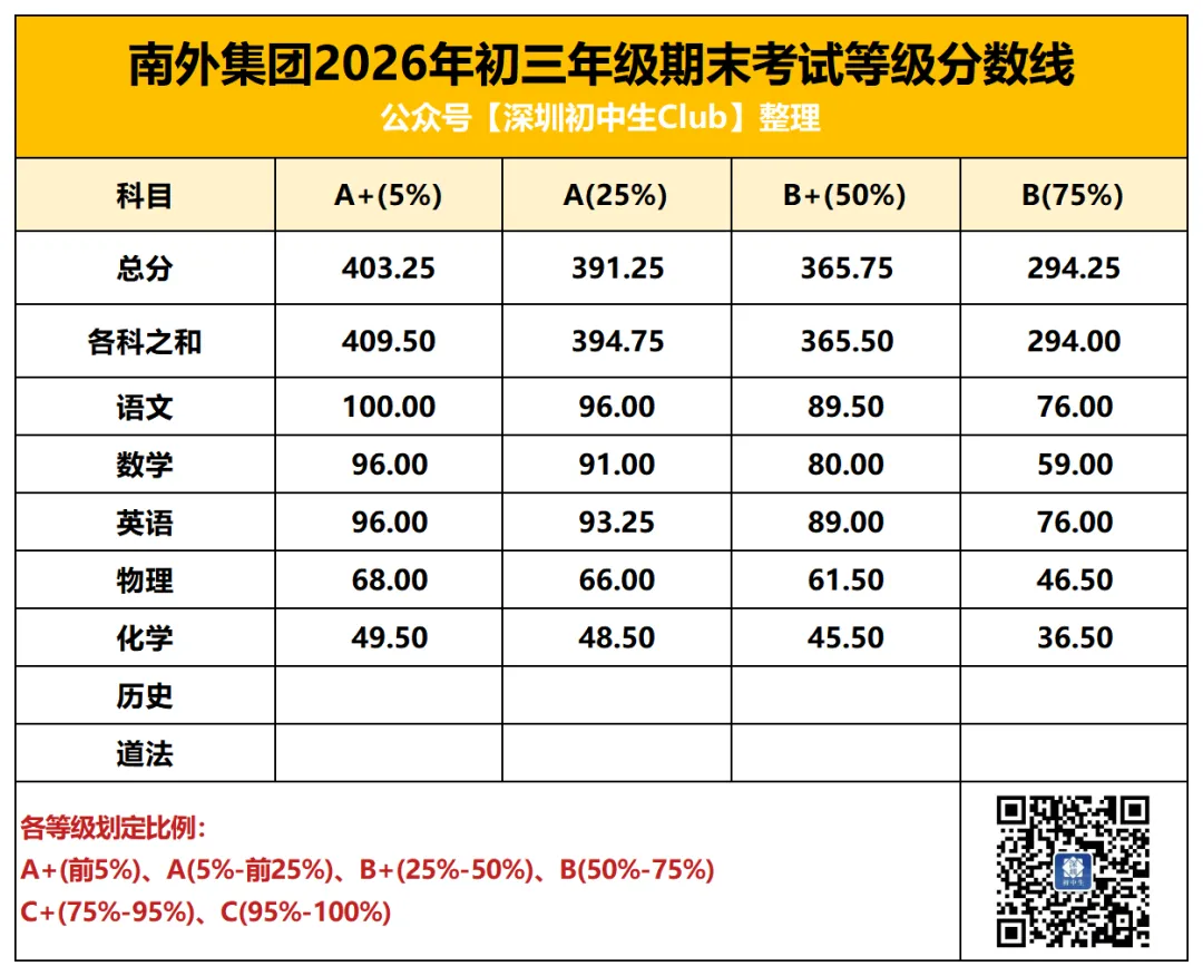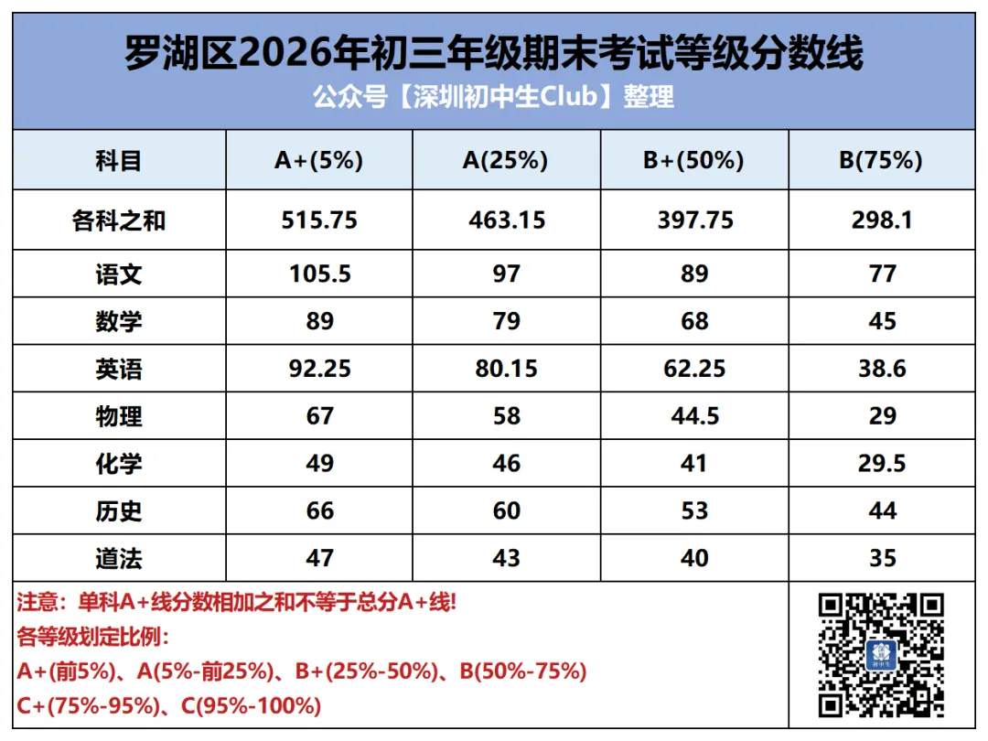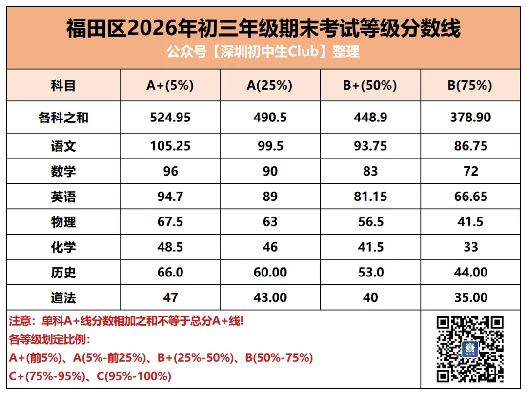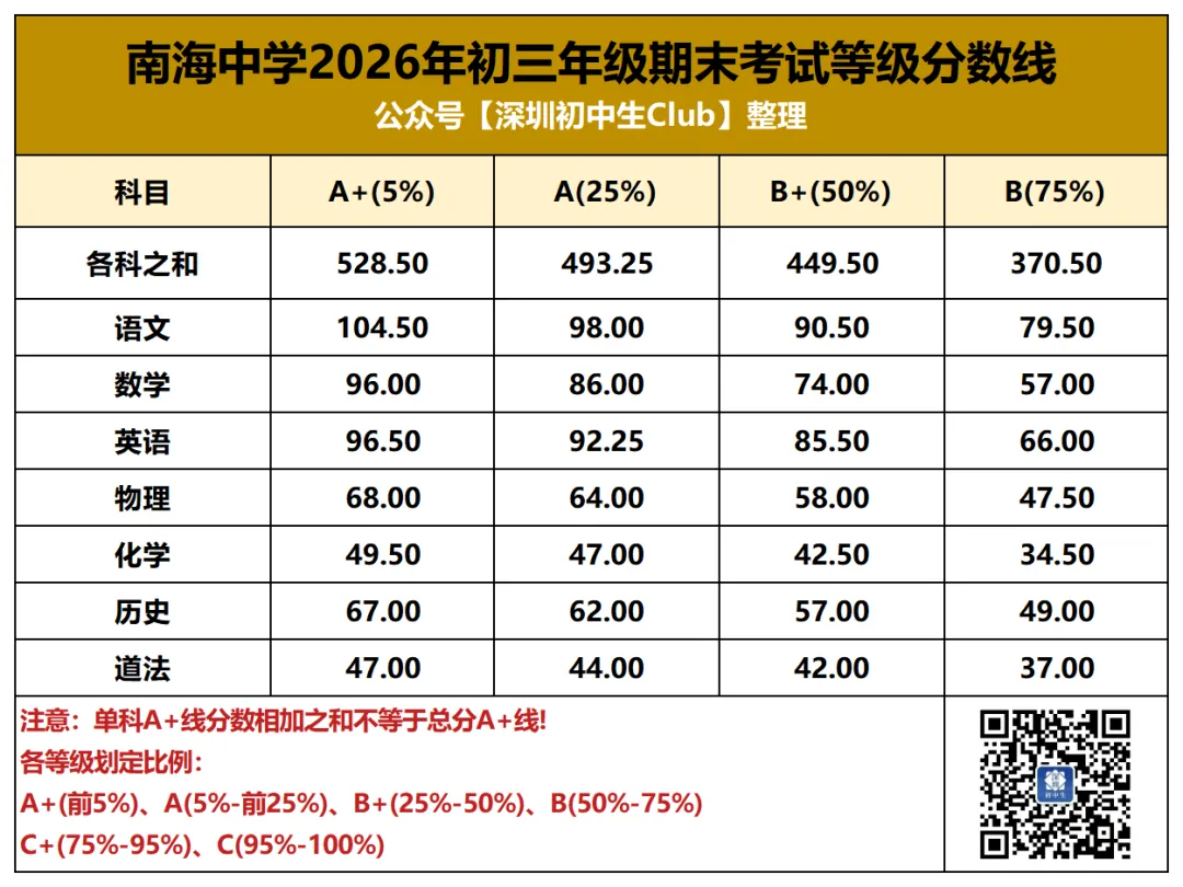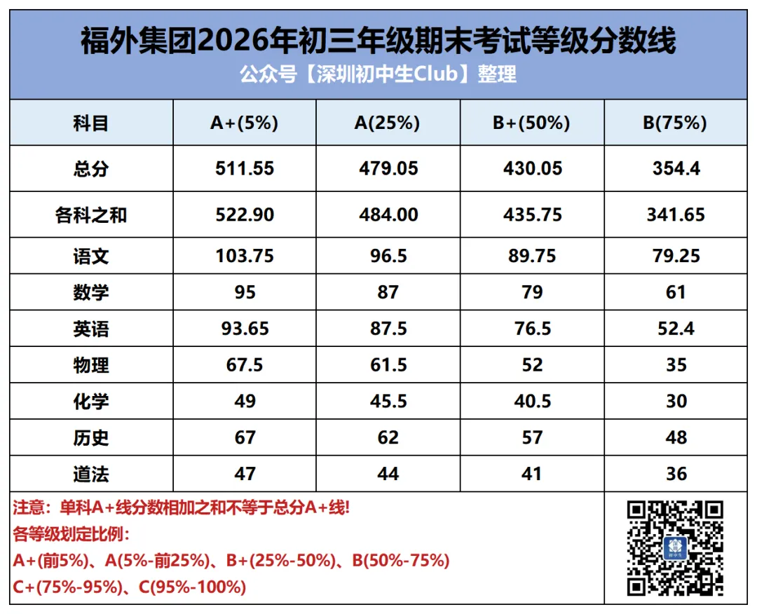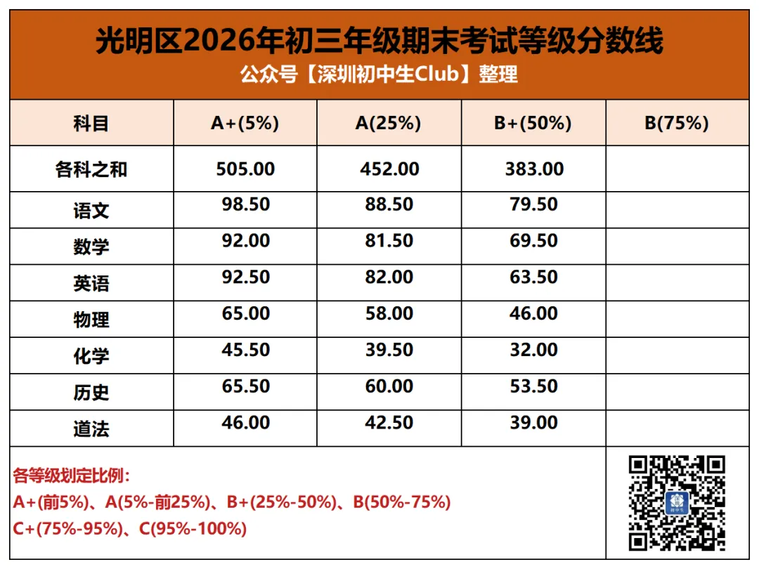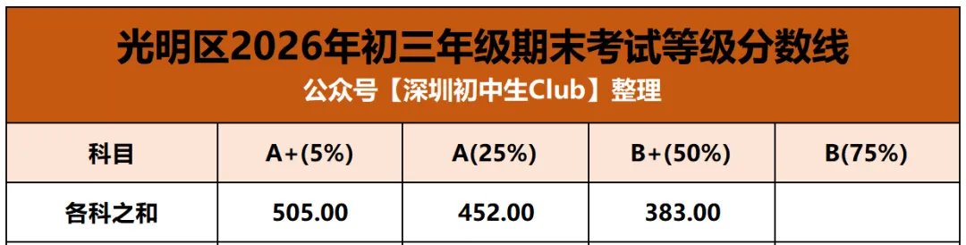 中考是深圳初中生在初中三年唯一一次全市统考,统一试卷、统一批改、统一划线。但其他的区内/集团大考在考试难度、评分规则等方面就存在差异了,尤其是生源水平的差异。同样是期末考七科等级线之和,福田和光明A+线相差近20分。