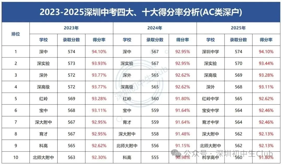 通过得分率定位则浮动空间会更大,毕竟每年中考难度都有变化。结合最近3年数据来看,考生需要所有科目(含体育)总分得分率在93%以上,才能裸考对应四大,总分得分率在91%以上,才有机会裸考对应十大。以2025年为例,十大最低录取分数560分,考生所有科目最多只能丢50分。