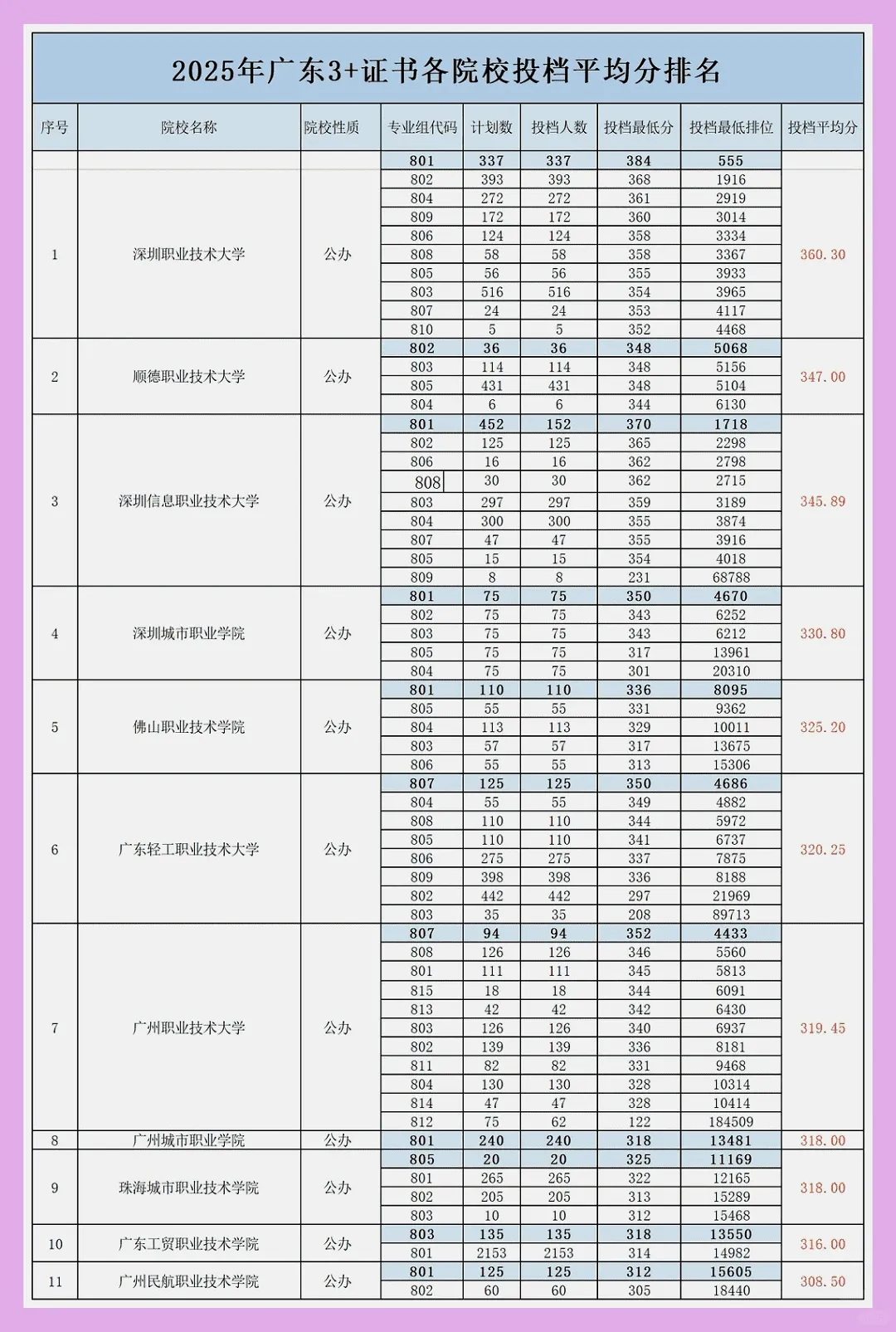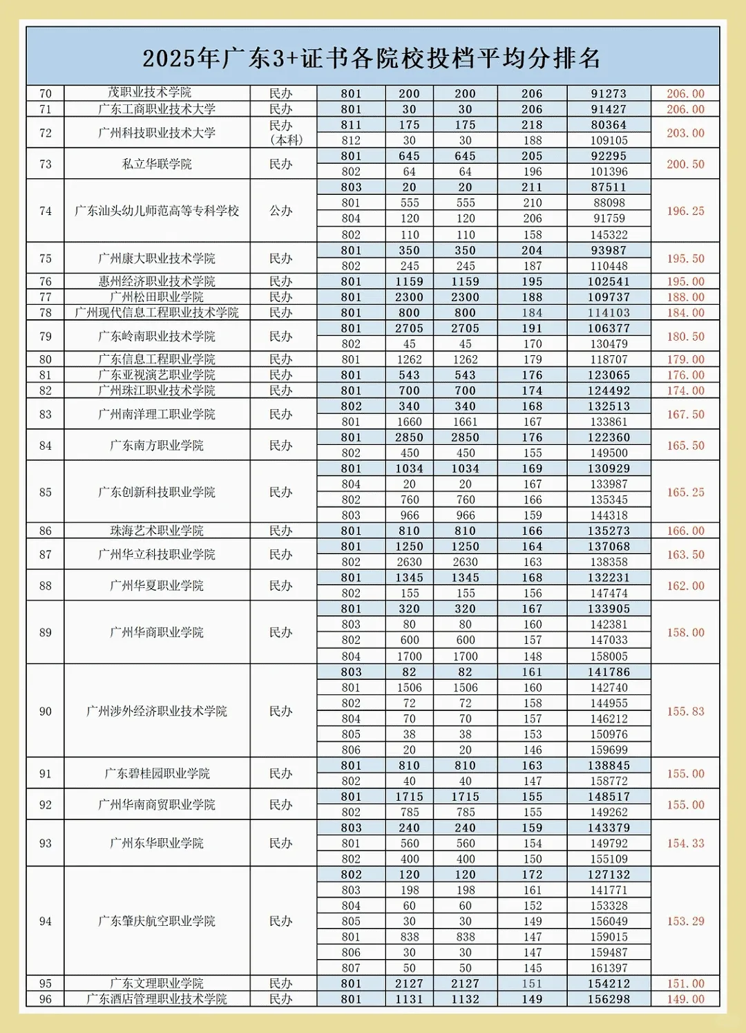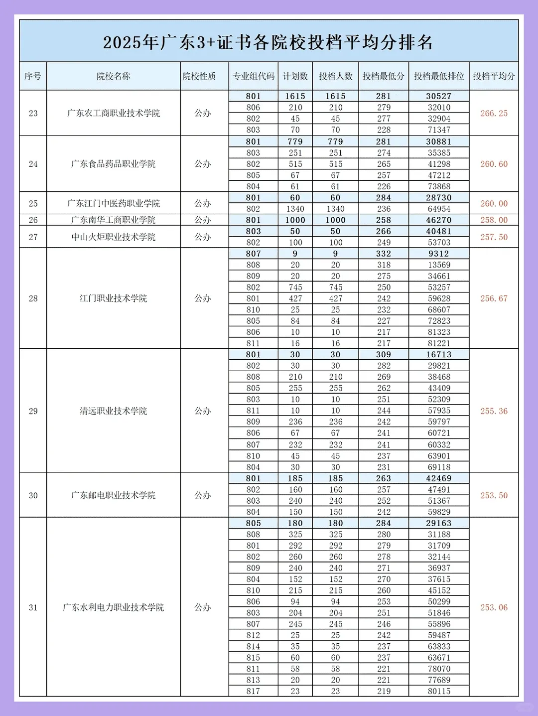 25年3+证书录取分数线: