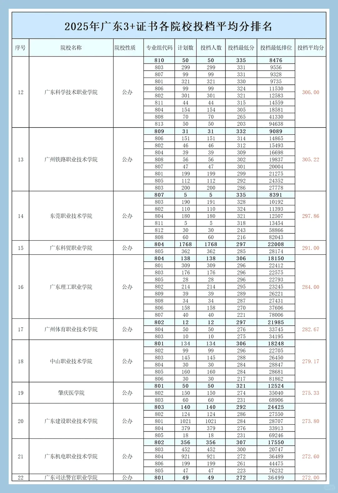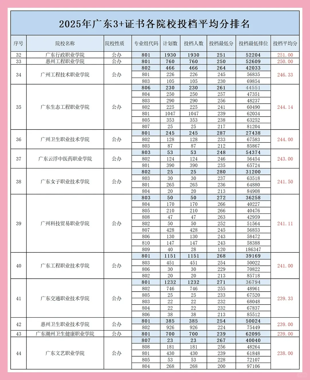 41所院校3+证书各专业录取分排位汇总