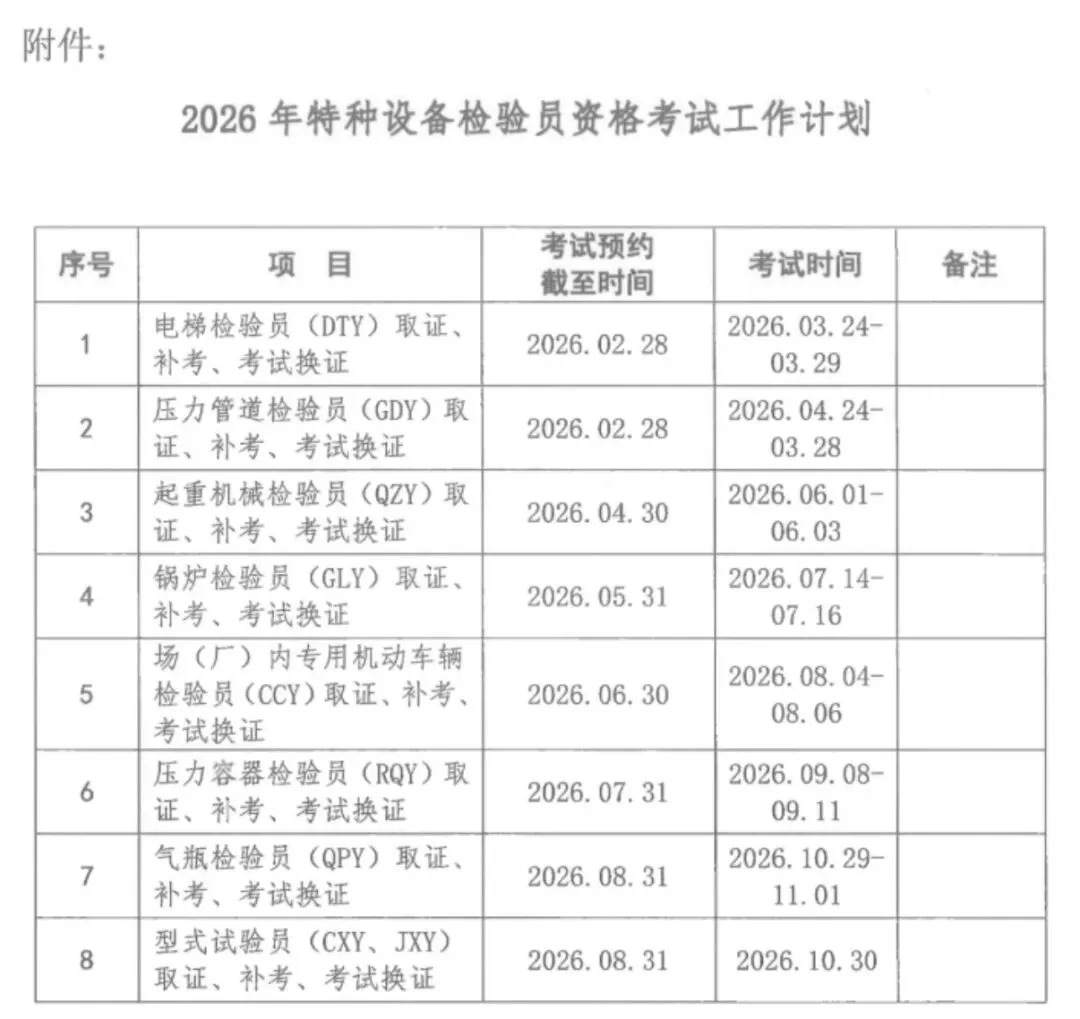关于宁夏省2026年特种设备检验员资格考试安排的通知