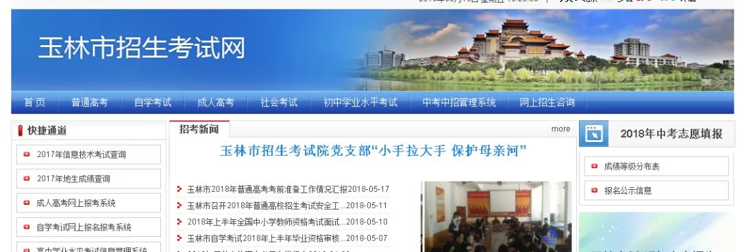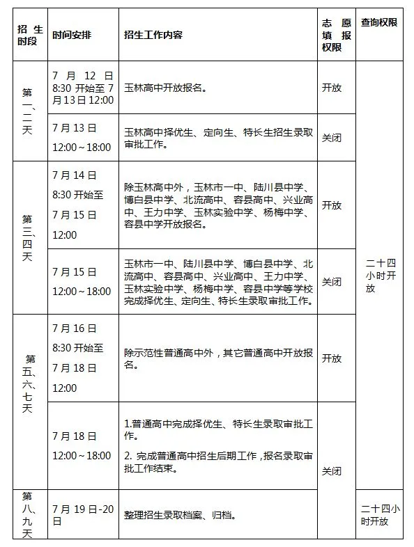 玉林市2018年普通高中招生网上录取填报志愿日程