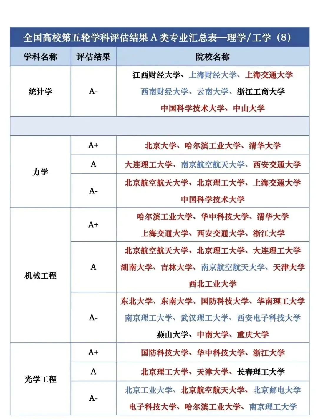 考研/高考填志愿必看:第五轮学科评估A类学科院校最全汇总
