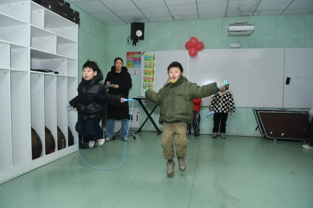 教室瞬间热闹起来!小筑梦师们放声唱起校歌,选择自己喜欢的乐器打着拍子。跟着体育老师的口令跳长绳、练平衡、玩接力,在蹦蹦跳跳中锻炼运动能力,大家边玩边盼在新操场解锁更多快乐~
