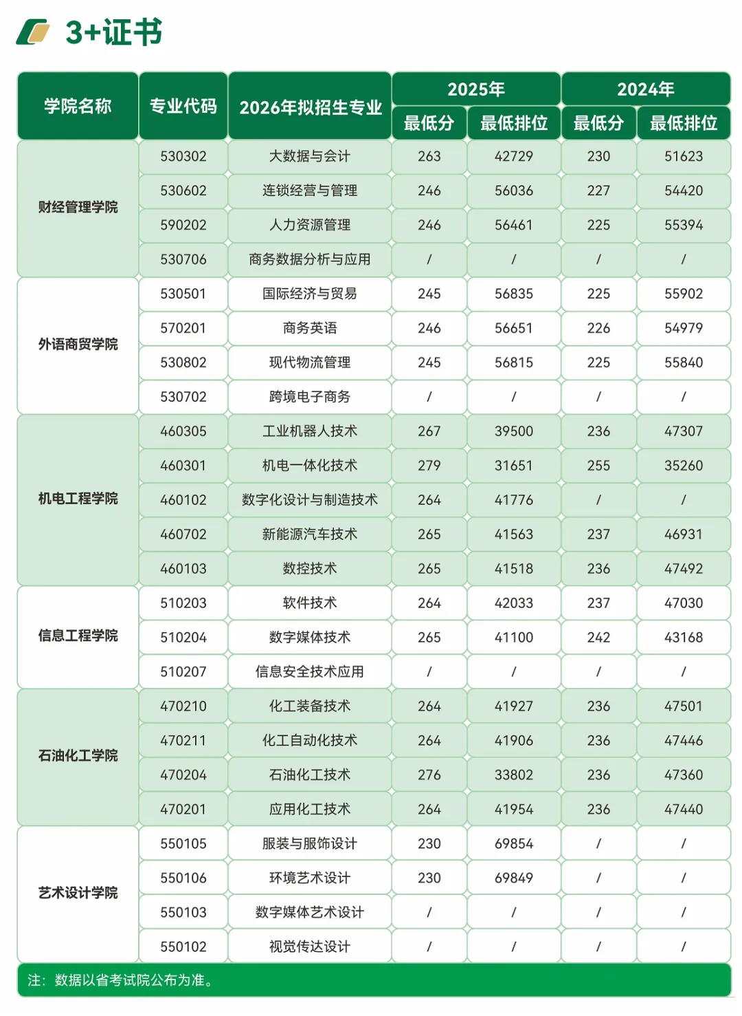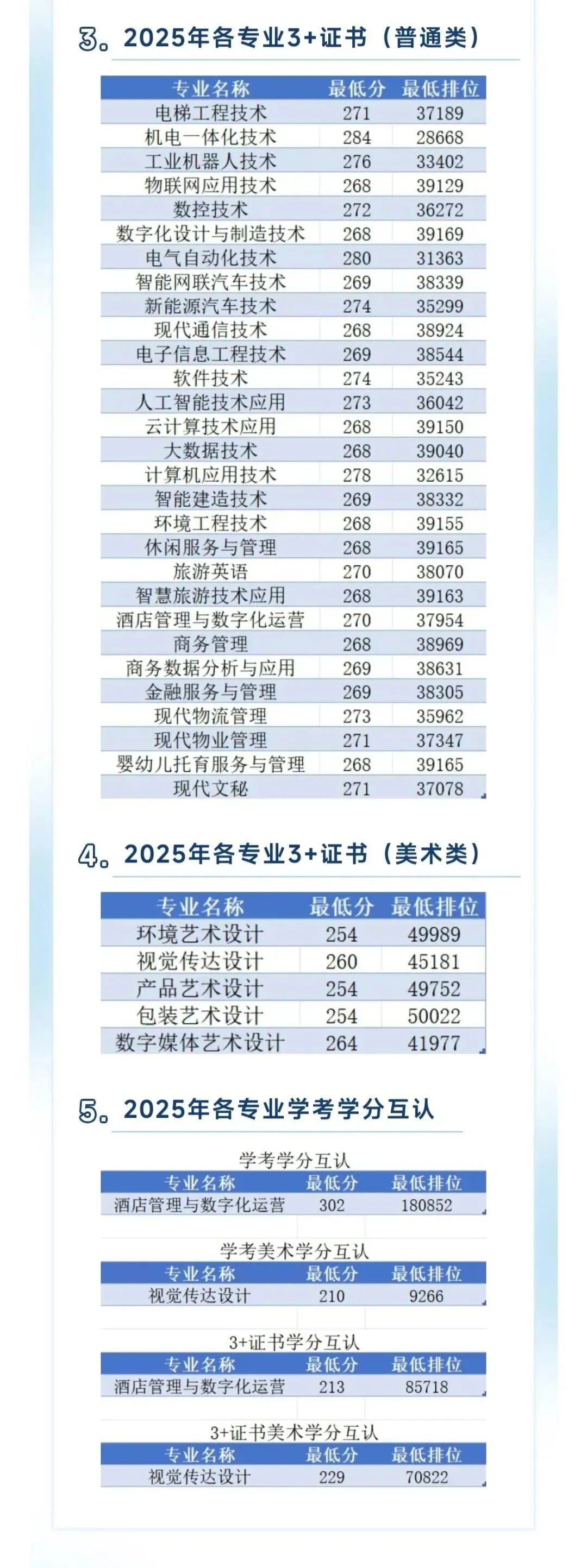 已有52所院校公布了2025年3+证书专业分数线,其中40所专科院校和12所本科大学,对大家填志愿很重要,非常有帮助!