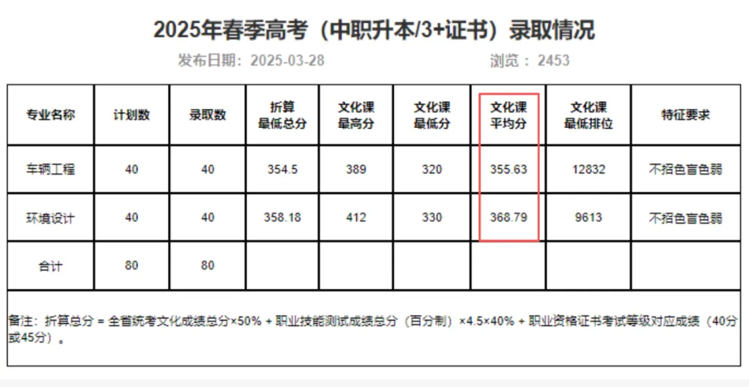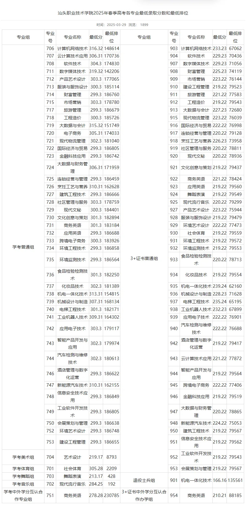 韩山师范学院2025年“3+证书”本科招生的录取分数如下: