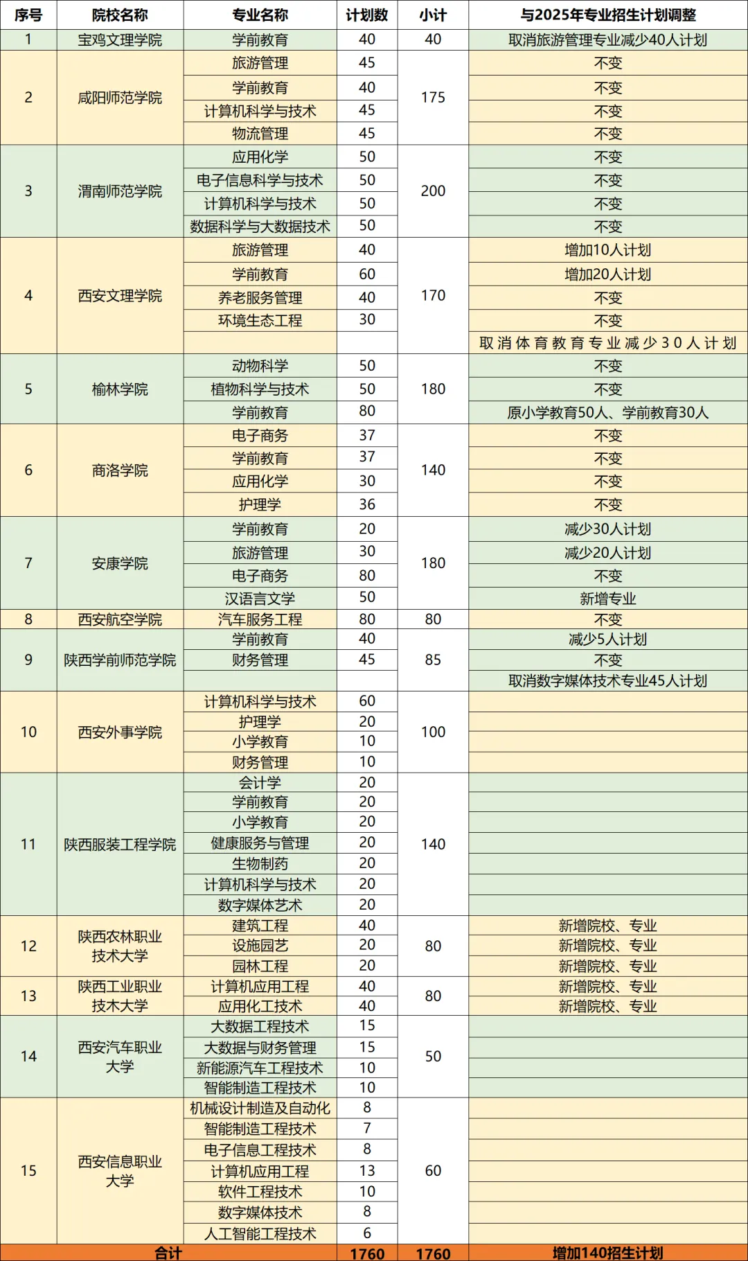 26年陕西省职业教育单招本科两大变化1.院校从原来的13所增加到今年的15所2.计划从去年的1620增加到今年的1760