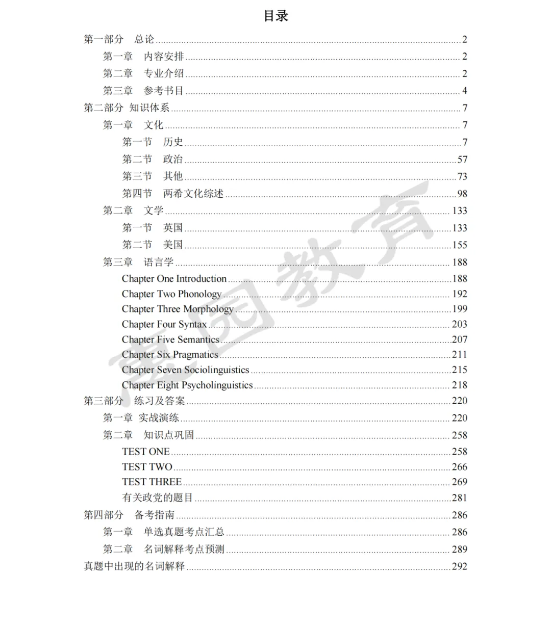 861专业课:包含英美文学、英美概况、语言学、西方文化导论、翻译、作文等板块,内容丰富且全面。英美文学部分对经典作品进行了深入剖析,英美概况则涵盖了社会、文化、历史等多方面的知识,语言学和西方文化导论板块为考生提供了扎实的理论基础。翻译和作文部分同样提供了大量的实例和练习,帮助考生在实际应用中提升能力。
