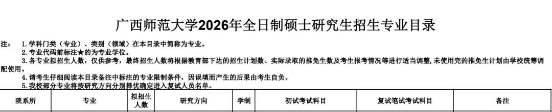 (二)初试科目:详见《广西师范大学2026年硕士研究生招生专业目录》