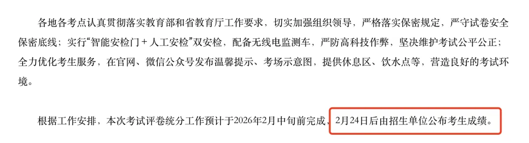 还有上个月江西省教育考试院说明了:2月24日后由招生单位公布考试成绩。