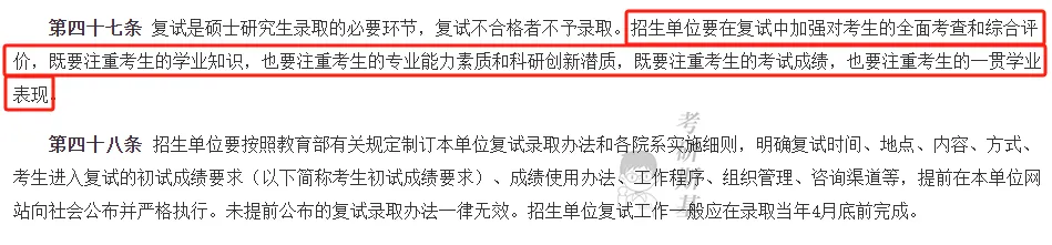 《26年新规》中,对于招生单位的复试环节有了新的要求:既要注重考生的学业知识,也要注重考生的专业能力素质和科研创新潜质;既要注重考生的考试成绩,也要注重考生的一贯学业表现。