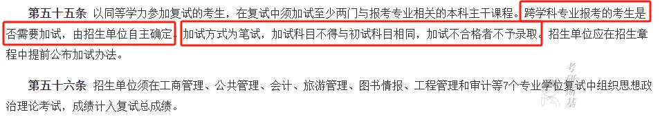 《26年新规》中指出,对于跨学科专业报考的考生,招生单位可进行笔试加试,加试科目不得与初试科目相同,加试不合格者不予录取。