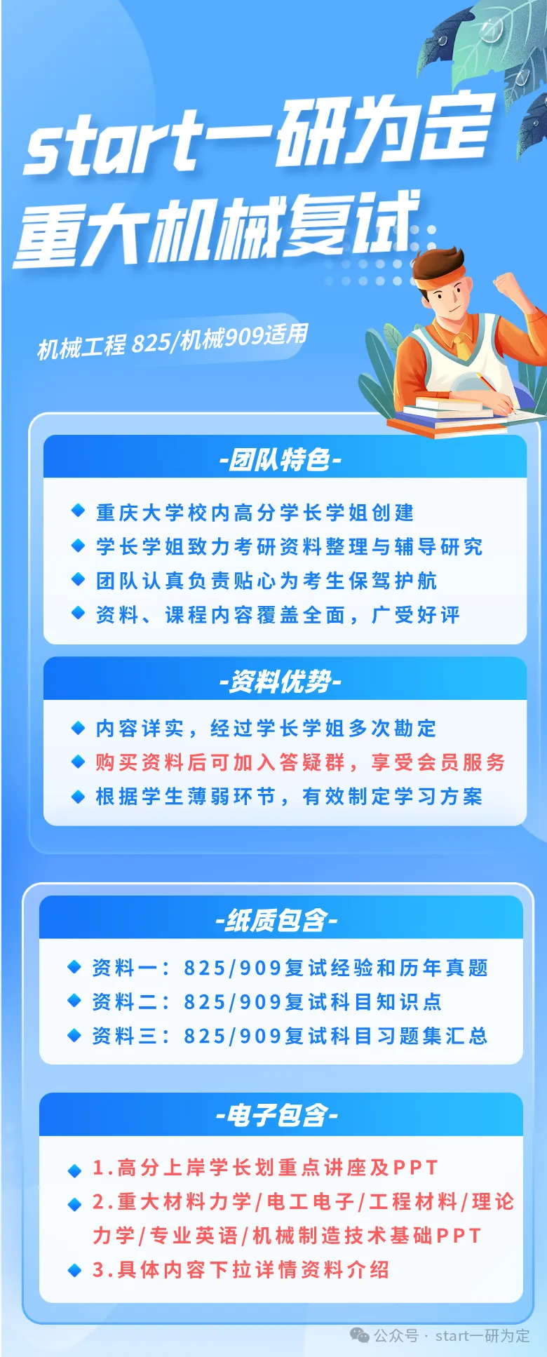 为了帮助大家更高效精准地准备复试,学姐也给大家准备了机械学院825/909、光电学院832/834、软件工程877等复试资料和辅导,有需要的同学可以添加文末联系方式或tb搜索start一研为定获取~