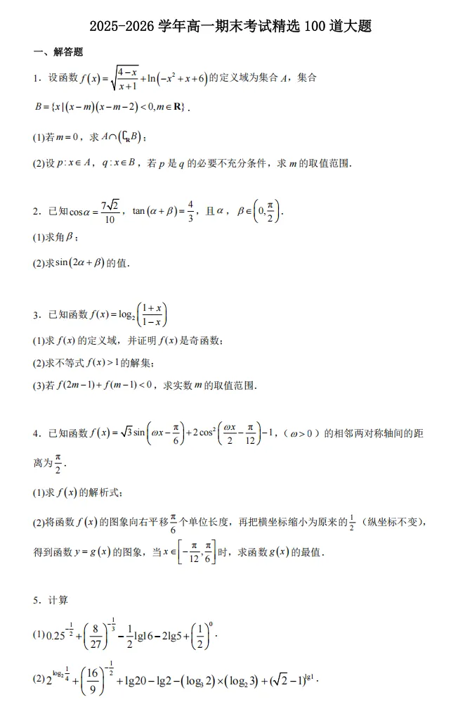 我用夸克网盘给你分享了「2025-2026学年高一期末考试精选100道大题」,点击链接或复制整段内容,打开「夸克APP」即可获取。