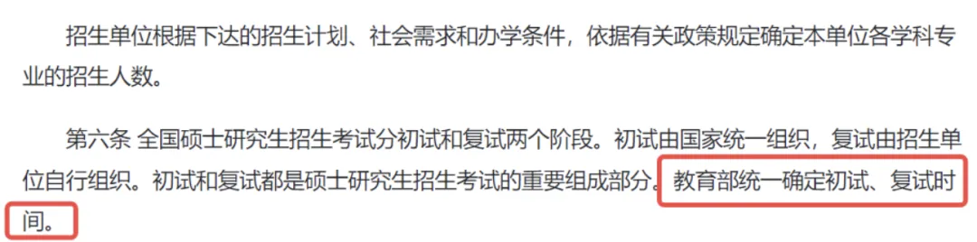在25考研研招规定里提到了:教育部统一确定初试、复试时间。