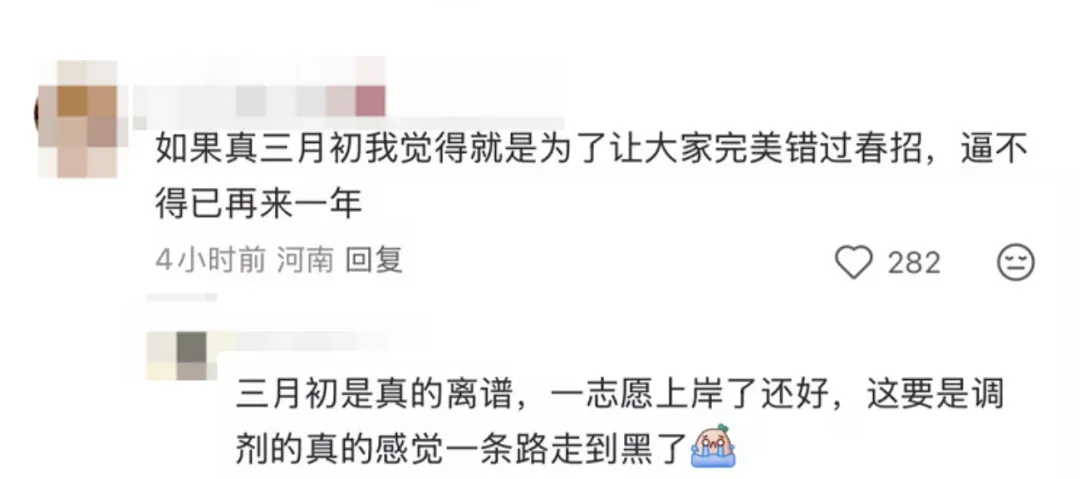 不过,也有考生表示不希望这么晚。如果真的在3月出分,就真的会错过春招在内的重要节点了。