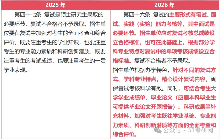 与2025年相比,2026研招复试要求: