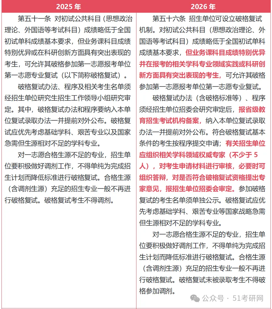 2026研招工作管理规定与2025年相比变化调整,小五姐着重列出了与复试、调剂相关的部分。