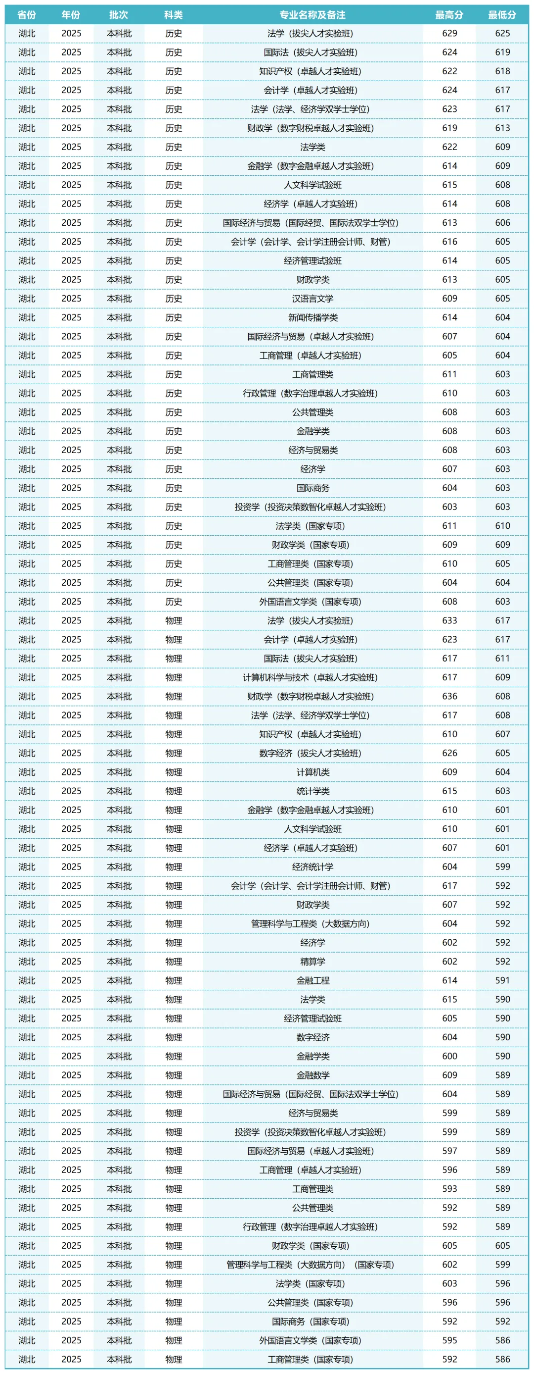 数据均来源于中南财经政法大学招生网,大家可以下载图片自行浏览查看,欢迎大家转发。高考资讯/升学规划/志愿填报/新高考选科