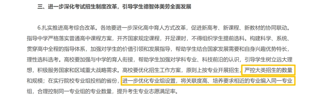 高考志愿填报,分数是硬通货,而高校招生政策的风吹草动,直接决定着分数线的涨跌。近期教育部发布《关于做好2026年普通高校招生工作的通知》,不仅对今年高考提出更高要求,更隐晦批评了2025年的招生乱象,其中关于大类招生的新规,堪称重构高考录取格局的“大招”,尤其对211高校影响深远——4类211录取分数有望暴跌,家长和考生务必提前吃透!通知第三大点明确要求,深化考试招生制度改革,高校原则上按专业开展招生,严控大类招生数量和规模;实行院校专业投档的省份,需优化专业组设置,仅能将关联度高、培养要求相近的专业编入同一专业组,同时严控专业组内专业数量。这是教育部首次针对大类招生出台明确限制,意味着2026年高校招生的“混搭套路”将被彻底遏制。此前,大量211高校靠“热门专业捆绑冷门专业”的大类招生模式稳住分数线:把计算机、人工智能等热门专业,与农学、土木、护理学等冷门专业塞进同一专业组,倒逼考生为冲热门专业接受调剂,间接抬升学校整体录取分数。而2026年新政落地后,冷门专业必须独立成组,失去热门专业“加持”,部分211高校分数线或将两极分化,甚至出现暴跌。国内农业类211高校(华中农业大学、南京农业大学、四川农业大学、东北农业大学等),2025年全部采用大类招生,核心操作就是“热门搭冷门”:将计算机科学与技术、人工智能等考生追捧的专业,与植物保护、园艺、农林经济管理等冷门农学专业强行混搭。这种模式下,超50%的考生为冲刺热门专业报考,最终被调剂到冷门农学专业,学校借此稳住生源质量和分数线。但计算机与农学的学习内容、培养模式差异极大,完全不符合新政中“专业关联度高”的要求,今年必然会拆分专业组。失去热门专业的引流,农学类独立专业组的报考热度会大幅下降,录取分数线大概率出现明显下滑,成为低分冲211的潜在机会。多数医药类211已发展为综合性高校,除核心医学专业外,还开设经管、理科等专业,近年大类招生乱象频发。最受吐槽的就是将临床医学(高分热门)与护理学(低分冷门)捆绑,二者录取分数线、培养模式天差地别;更有高校将信息管理与信息系统、动物医学、应用化学等跨学科专业,全部塞进医学类专业组,形成“医学+经管+理学”的大杂烩。新政要求按培养要求归类,临床医学与护理学、经管类专业必须拆分。独立成组的护理学、动物医学等专业,因就业前景、报考热度远不及临床医学,录取分数线会大幅下降;包括石河子大学医学部在内的高校医学类招生,都将面临整改,家长需警惕盲目报考原混搭专业组的调剂陷阱。西南交通大学、河海大学、中国矿业大学、长安大学等传统工科211,王牌专业多为土木工程、矿业工程、水利工程等“夕阳产业”方向,因不受高分考生青睐,近年被迫靠大类招生续命——将这些冷门工科与电子信息、计算机等热门专业混搭,部分专业组内专业数量超20个,调剂风险极高。电子信息与土木工程的学科体系、培养方案差异显著,无法再编入同一专业组。今年冷门工科必须独立招生,而土木、矿业等专业受行业发展前景限制,对考生吸引力不足,录取分数线或将迎来暴跌,适合对工科有执念、分数中等的考生重点关注。郑州大学、南昌大学、上海大学等合并型综合性211,因扩招合并后专业繁杂,近年招生频现“跨体系混搭”套路,被家长吐槽“挂羊头卖狗肉”。以上海大学2025年物理类电气类专业组为例,组内无任何电气相关专业,反而塞进机械设计制造、新能源材料,以及建筑学、城乡规划等“天坑”专业,大量考生沦为调剂“冤大头”。新政严控专业组规模和关联度,此类跨学科大杂烩专业组将被强制拆分。独立成组的建筑学、城乡规划等冷门专业,失去热门专业引流,录取分数线会明显下降;同时学校整体分数线因无法再靠混搭抬分,可能出现波动,家长填报时需仔细甄别专业组构成,避开隐形调剂坑。4类211拆分后的独立冷门专业组(如农业类农学组、工科类土木组),分数大概率走低,且依托211院校的平台资源,适合分数中等、看重学校头衔,或计划考研深造的考生;同时可关注地理位置偏远的211冷门专业(如东北农业大学、石河子大学),这类院校往年就有分数爆冷记录,今年机会可能更多。部分高校可能试图打政策“擦边球”,将看似关联、实则差异大的专业编入同一组。家长和考生务必仔细查阅招生章程,确认专业组内所有专业的培养方向和就业前景,避免因“低分冲校”再次落入调剂陷阱;同时拒绝轻信培训机构“保录”“内部名额”等虚假宣传。若分数仅能触及211冷门专业组,需权衡专业就业前景与学校平台的利弊——与其冲刺暴跌的211冷门专业,不如选择普通一本的王牌专业,更利于未来职业发展;对专业无明确偏好、侧重学历提升的考生,可重点关注211冷门专业组的捡漏机会。教育部这次对高校招生的规范,是为了让高考招生更公平、科学,对考生来说是好事。它不仅打破了部分211高校的分数套路,更倒逼高校优化人才培养方案,减少考生因调剂被迫学习冷门专业的痛苦,真正实现“学其所爱,爱其所学”。但对上述4类211高校而言,分数线波动或许不可避免。家有考生的家长,在帮孩子填报志愿时,一定要多关注这些变化,研究好各高校的招生政策再做决定。希望每个孩子都能被心仪的专业录取,开启美好的大学生活!大家对今年
