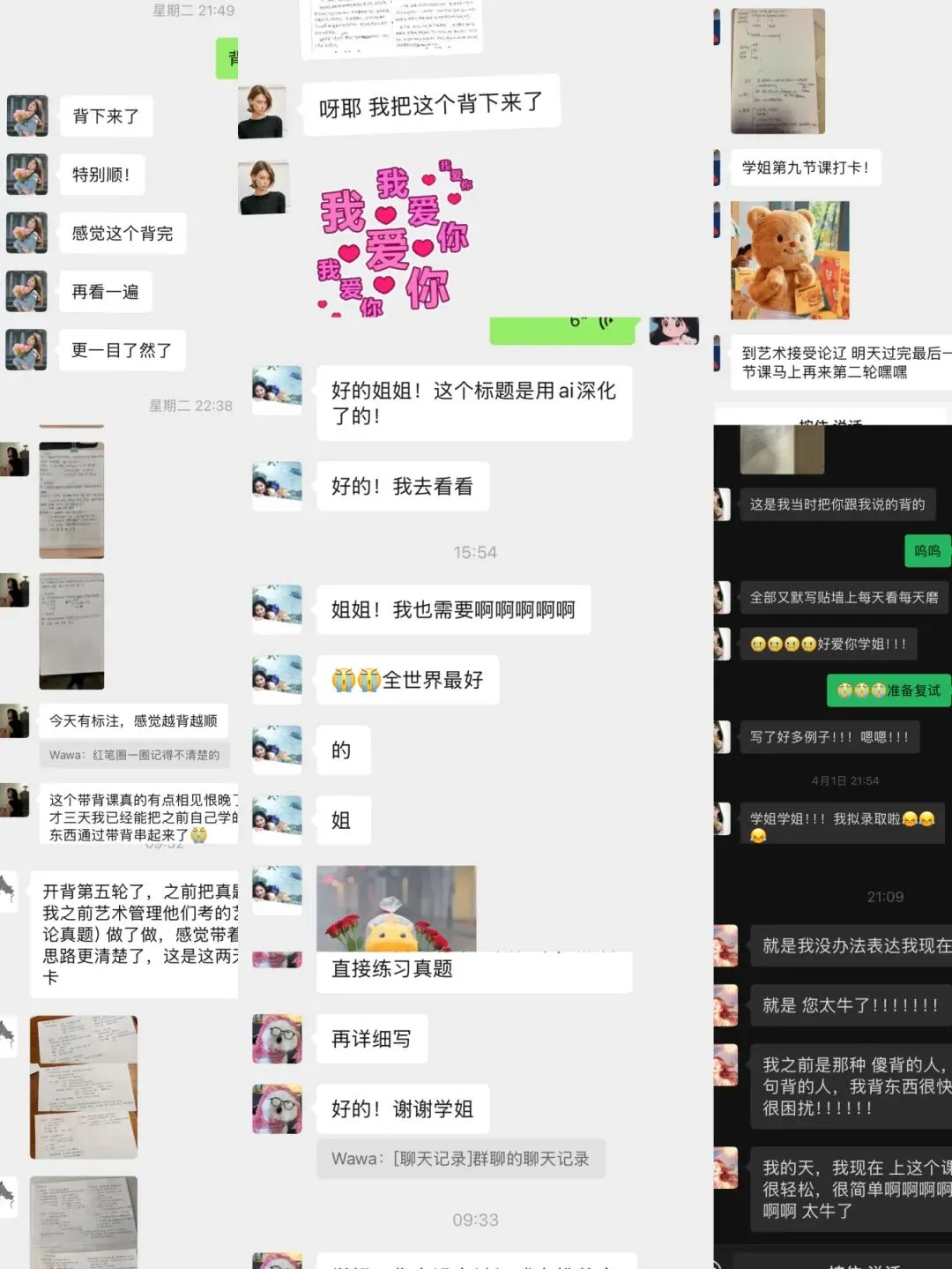 26年要备考的同学大家开始可以启动了,首先本团队由27位艺术类博士硕士组成,而艺术概论板块主要有Wawa学姐亲自上课,改作业,辅导,监督(另配资料的助理4名和一名期刊编辑辅助改题检查),往届上过课的同学都可以看得到Wawa学姐的认真,负责,高效解决学生问题的态度,所以艺术概论课程她上我们很放心,当然学生们可放心。数据都在下面,一会大家自己看。是什么就是什么,没必要忽悠学生们,包括大家报课可以多去试听多去对比其他机构,再去考虑是否选择我们,我们之所以开试听就是让大家选择,但是切记:一旦开课,任何理由不退费。