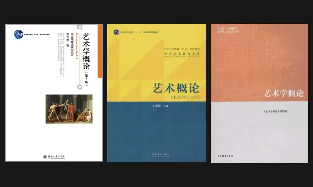 (彭吉象,王宏建,马工程,王一川)(辅助资料:王次炤《艺术学基础》,《美学原理》,《美的历程》)几乎包含了所有考艺术概论的学校都有的书。