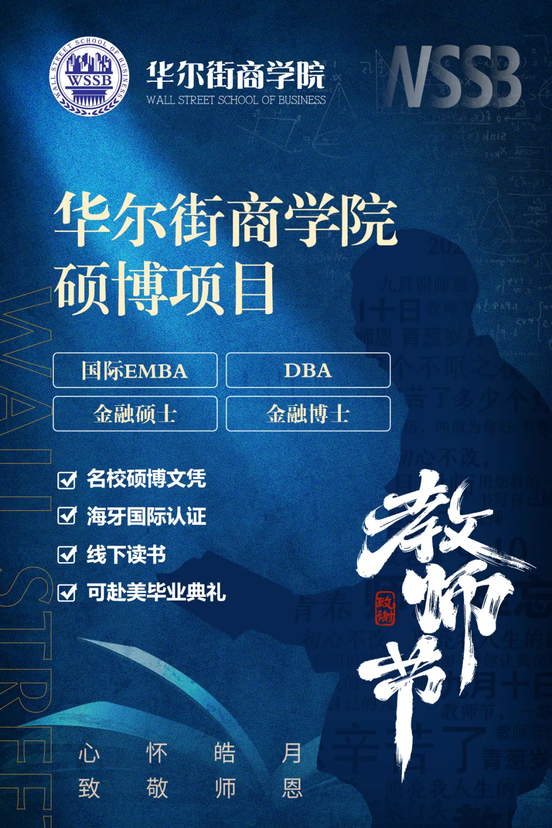 美国华尔街商学院在职硕士博士班学制:硕士 1.5年 博士3年对象:总经理,董事长,各部门负责人等。地点:清华科技园,(毕业后颁发学位证)学费:硕士 2.98万,博士4.98万。报名:13466618468 刘老师