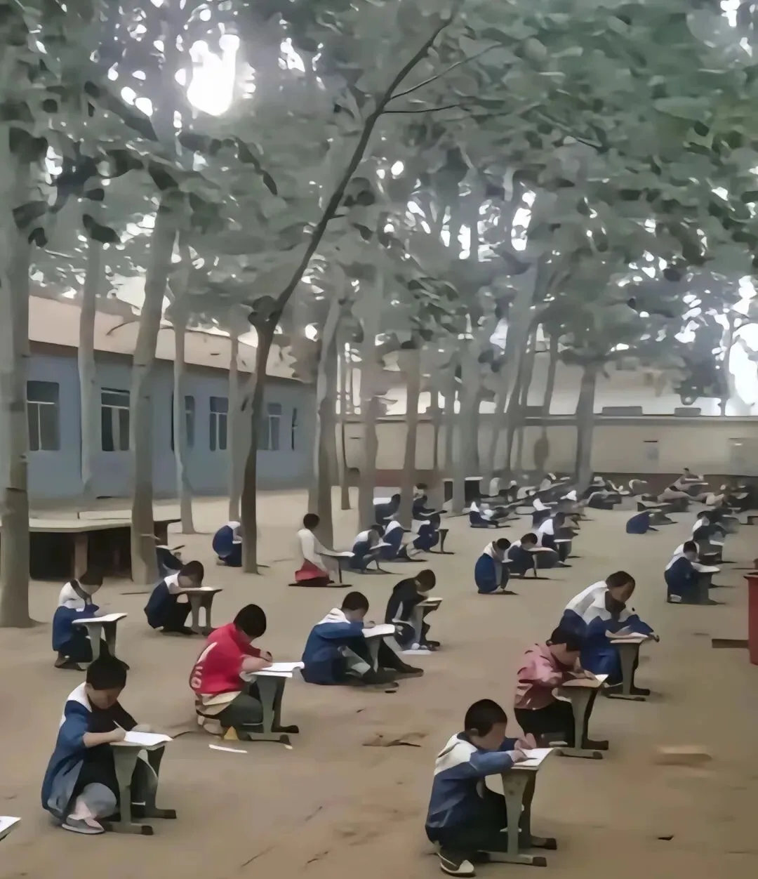 晴天考试的话,有时候会晒着,那会就羡慕人家排在阴凉处的同学,偶尔的时候会在考试途中刮大风或下雨,那会大家抱着凳子和卷子狼狈的跑向教室。