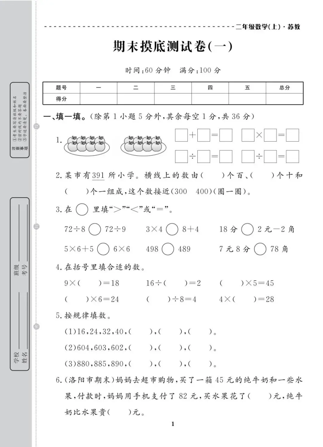 二年级上册数学苏教版期末真题考试卷10套,带有答案,高清电子版,可以下载打印,这份期末考试真题复习冲刺测试卷,涵盖了角的认识,长度单位厘米,100以内笔算进位,图文应用题等核心内容,配有详细答案需要的家长抓紧打出来,陪孩子夯实基础冲高分!领取完整电子版:
