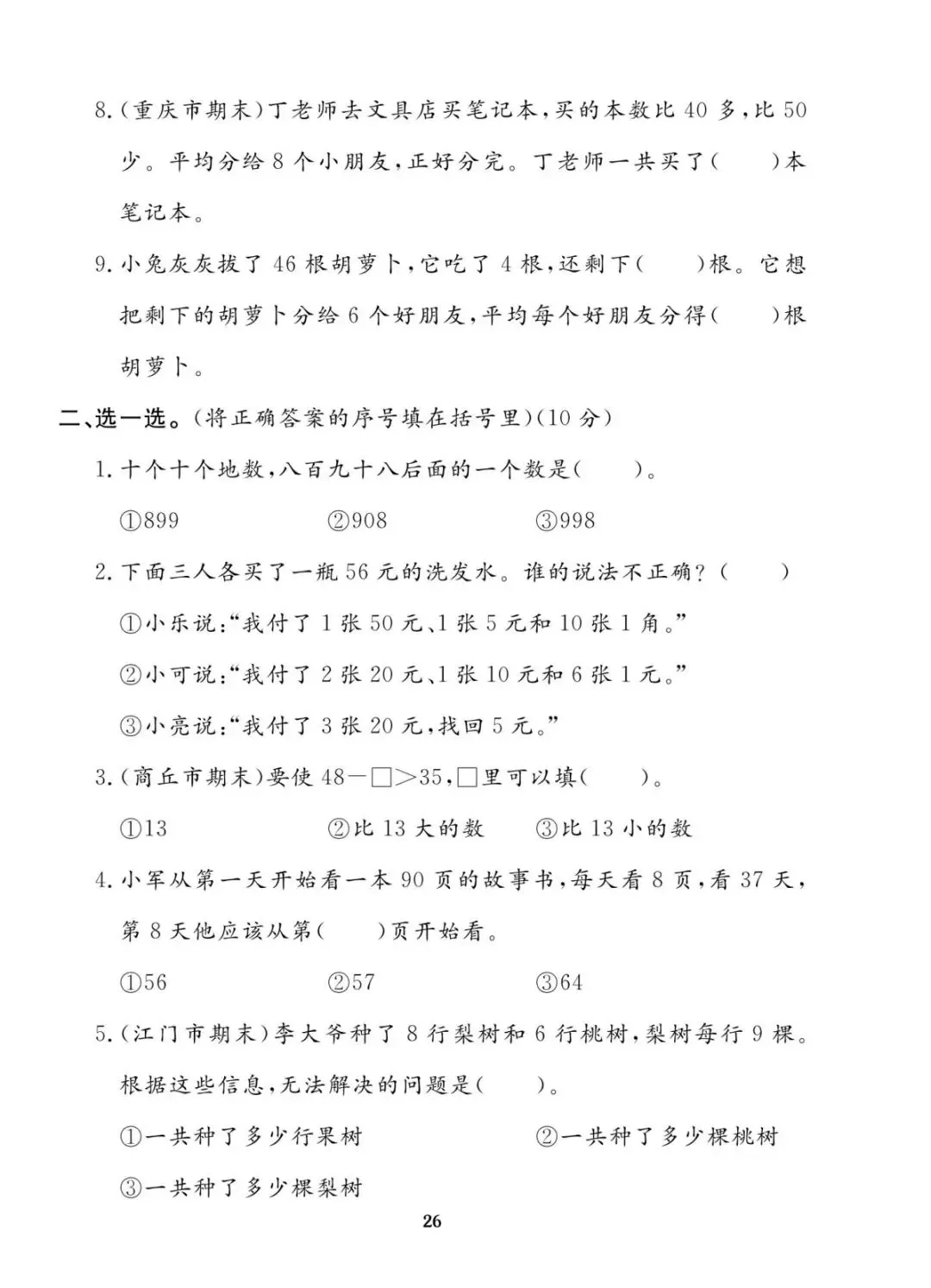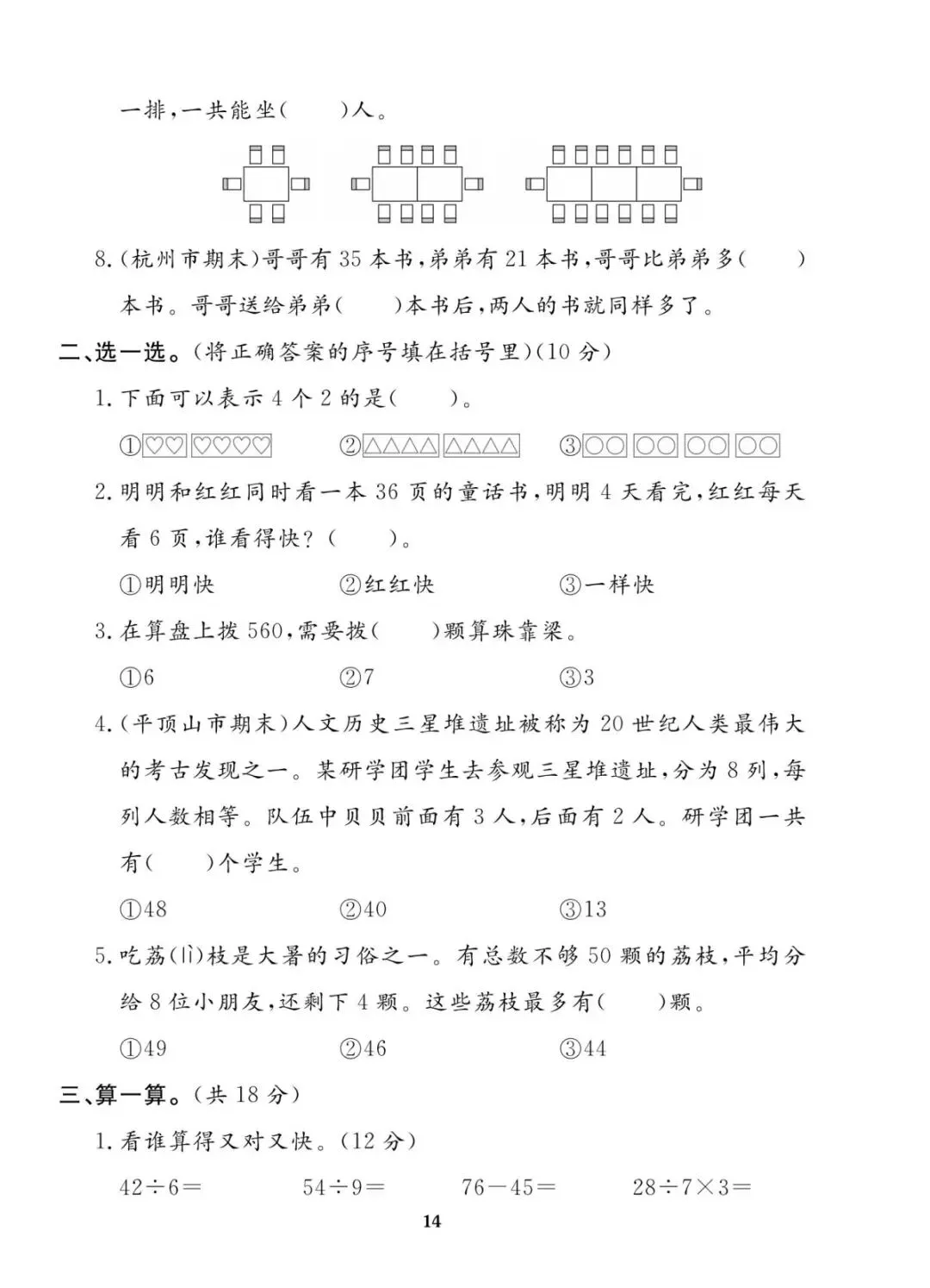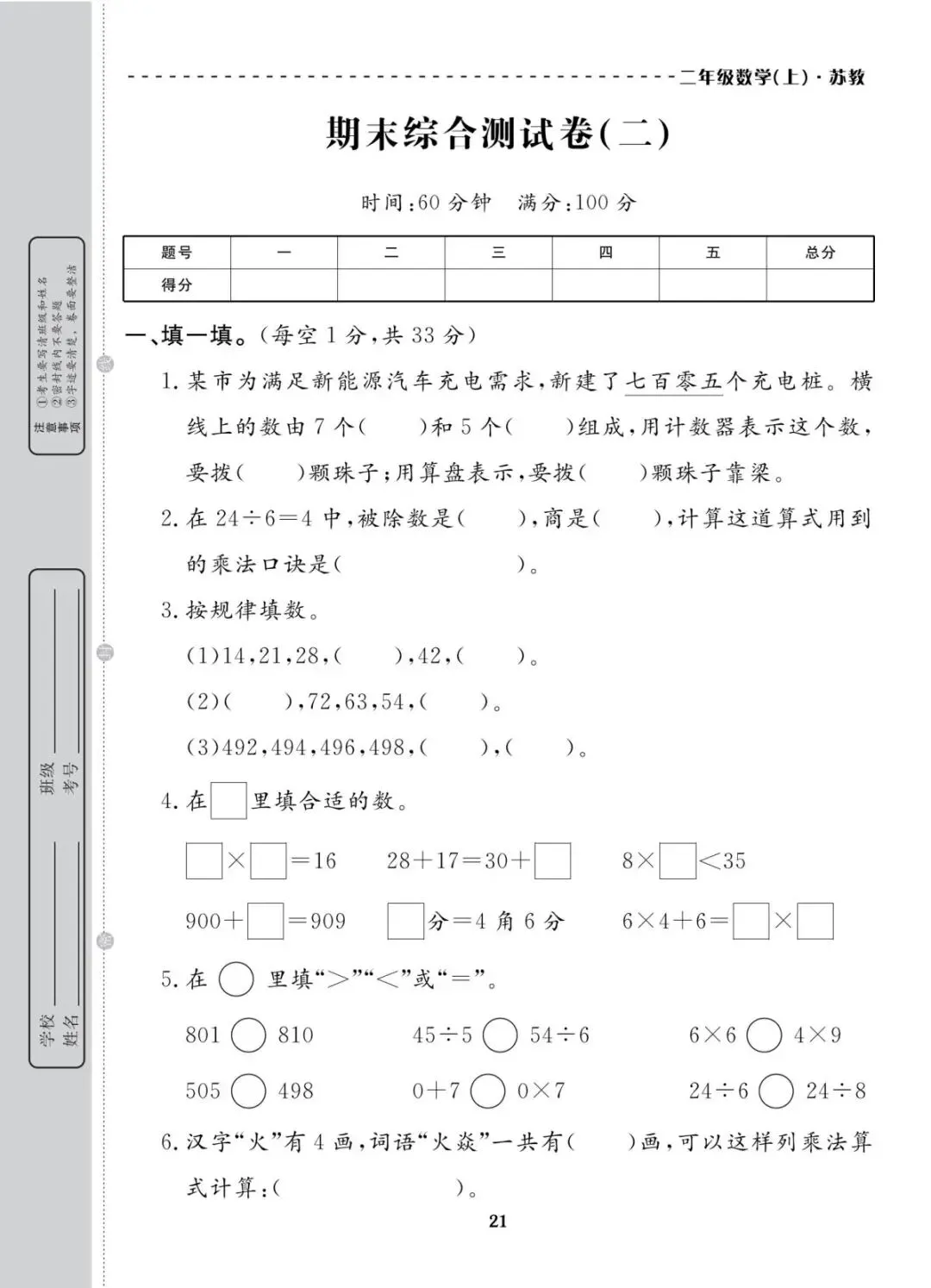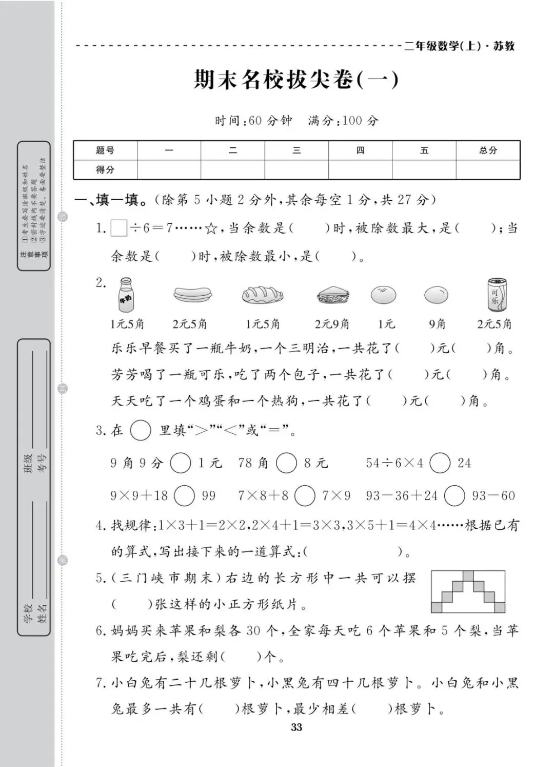 苏教版 二年级上册数学期末真题考试卷10套|含答案 电子版可打印