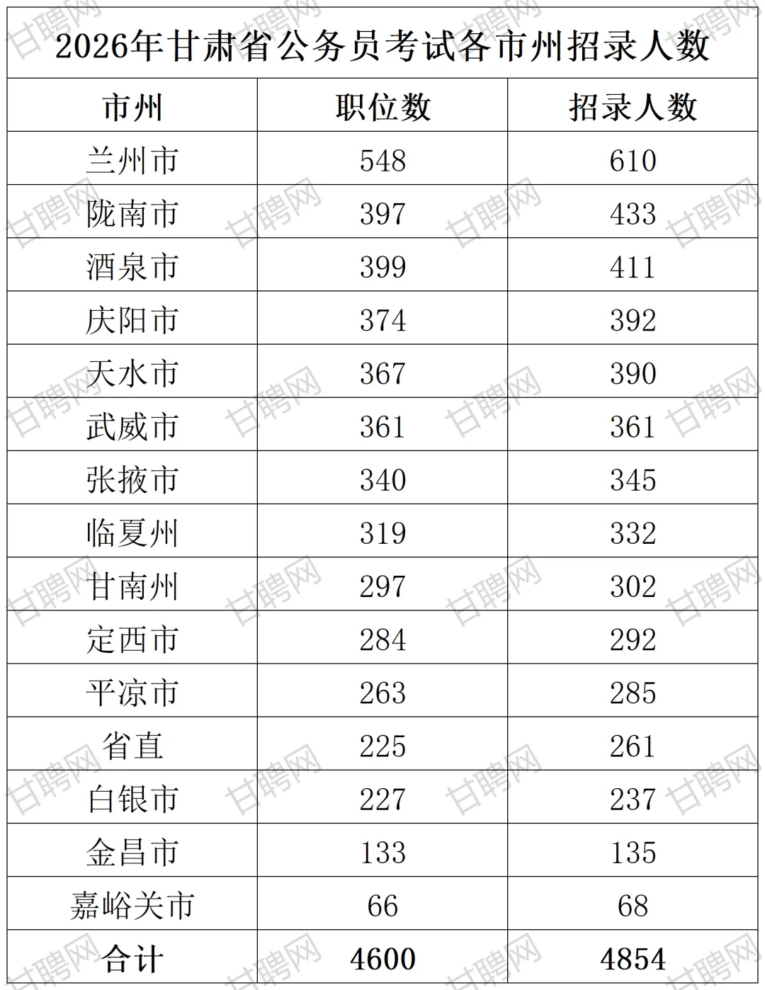 早安庆阳丨甘肃省2026年度考试录用机关公务员和参照公务员法管理单位工作人员公告