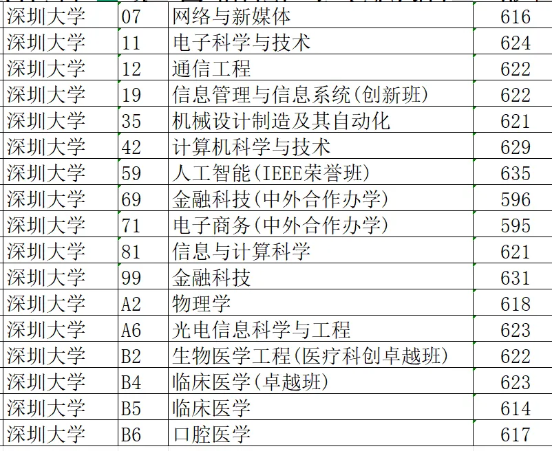 深大的计算机、电子信息等热门普通专业,其录取分数则与武汉理工大学、西南交通大学、合肥工业大学等强势211高校相近。