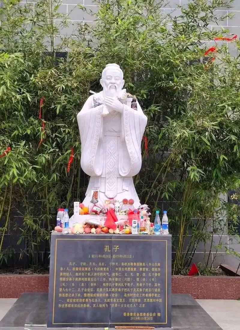 去了趟学校,见着孔子像,我是肃然起敬。