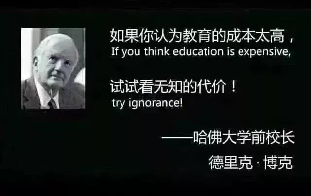 时间过得很快,眨眼本学期即将结束,期末考试将至,这是对学生学习成果的检验,也是对学校、老师教育教学成果的一个阶段性考察。想要取得满意的成绩,需要家长、老师和孩子三方的共同努力,真正推动最好的教育。下面这篇文章分享给大家,共同学习与成长。哈佛大学前校长德里克博克,是美国当代知名的法学、社会学、高等教育学家,在教育界享有盛名。他曾在哈佛大学担任20年的校长职务。“If you think education is expensive, try ignorance!”这段话在各个文章中不止一次出现,只因教育是我们永久的命题。道理谁都会讲,但一旦到了实践中,我们一个个都败下阵来,还不忘拿一套说辞来搪塞。努力很累,教育孩子很累,陪伴孩子成长很累。但这一切一定是值得的。在教育孩子的时候,你选择了挣钱,不去管教孩子,等孩子大了,你辛辛苦苦挣一辈子的钱不够他败家一年!在教育孩子的时候,你选择了管教,陪伴,等孩子大了,你一辈子没挣到的钱孩子一年就挣到了!你在哪方面付出,就会在哪方面收获,孩子的教育时效性太短,错过了就再也没有了!孩子优秀了,你留钱做什么?孩子不成器了,你又留钱做什么!对你要求严厉的老师,你不要心生敌意,反而要心怀感激。因为,只有负责的老师才会顶着种种压力和风险,去苦口婆心或大动干戈地管教你。他期待你成才变好,才如此出力不讨好。这是传道授业的悖论,也是为人师者的深情。 只有负责的老师才管学生!不指望每个学生都懂这个道理,因为他们毕竟还只是个孩子~但是希望每个家长都懂这个道理,因为你们毕竟不是孩子了!还要告诉孩子,在成长过程中遇到负责、公正、认真的老师是多么值得庆幸的事情啊!当老师的你,生命中会遇到很多个学生,每一个学生对你而言,只不过是众多学生中的一个。然而,对于学生来说,你却是他生命中遇到的有限的老师。你将是开启他万千世界的人,若爱,请深爱;若教,请全力以赴。在这世界上,老师与家长本应该是最能互相理解的人,我们的唯一心愿,都是为了孩子。因为孩子,我们紧密相连;因为孩子,我们共同奋斗。孩子,妈妈希望你能够遇见一位手持戒尺、眼中有光的老师。她能用眼中的光彩引领你前进,她能用灵魂中的爱促进你成长。在你幼小的心灵中,播下人生梦想的,是父母,为你启航梦想的,是老师。