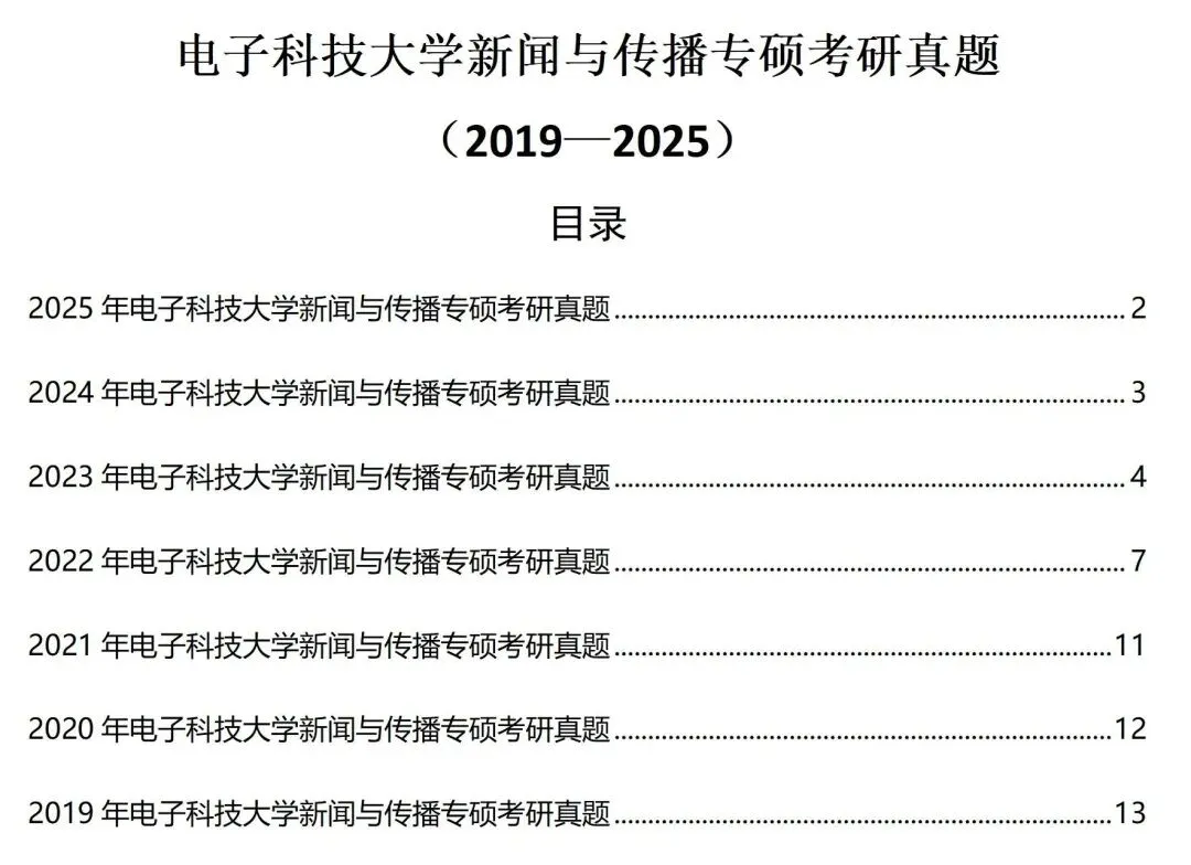 >电子科技大学新闻与传播考研真题2019-2025历年