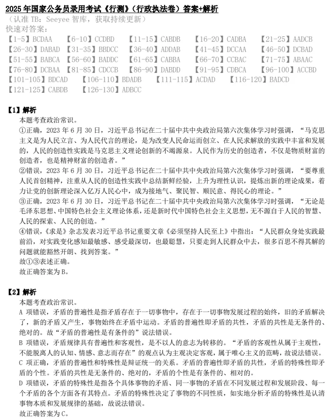 国考笔试历年真题答案(2000-2025)