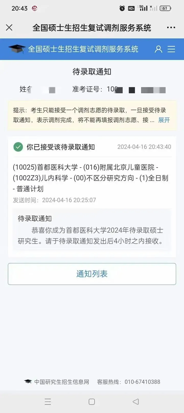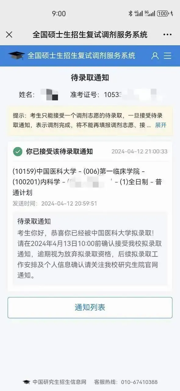 初试380+ 调剂录取 中国医科大学第一临床医学院 内科学