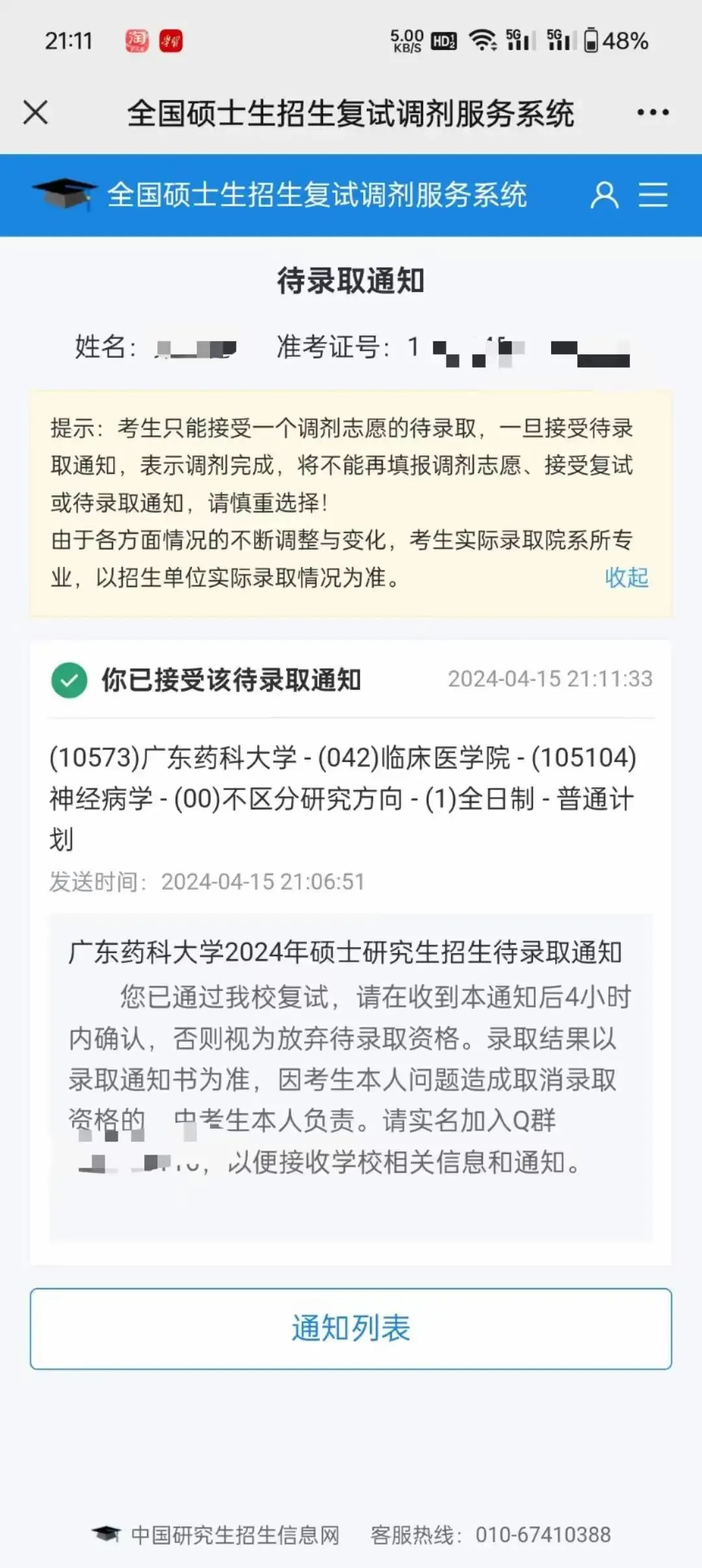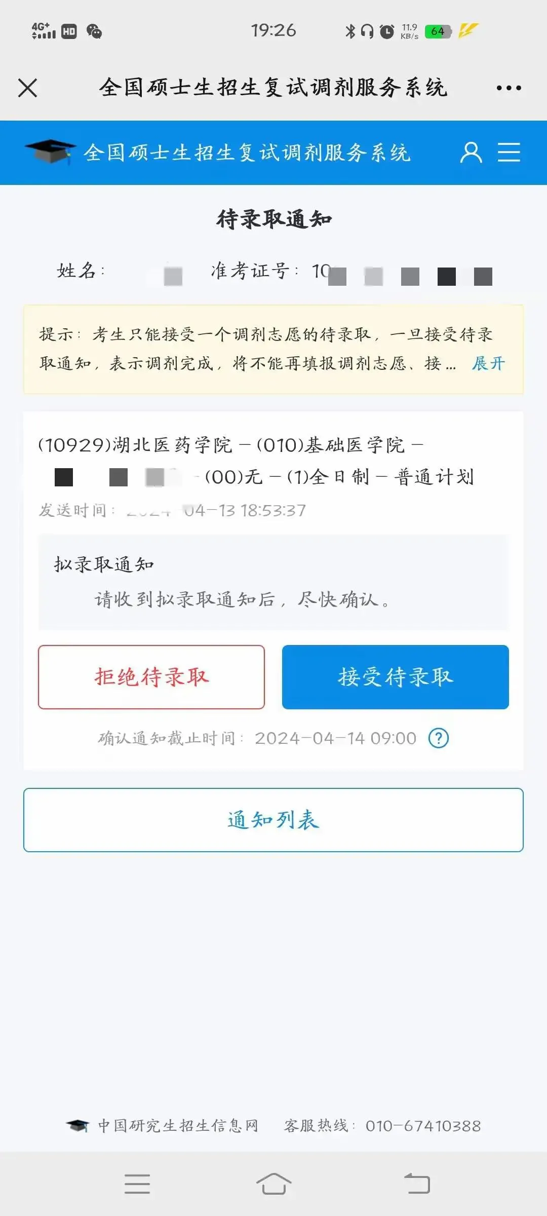 初试305 超国家线1分 调剂录取 湖北医药学院基础医学