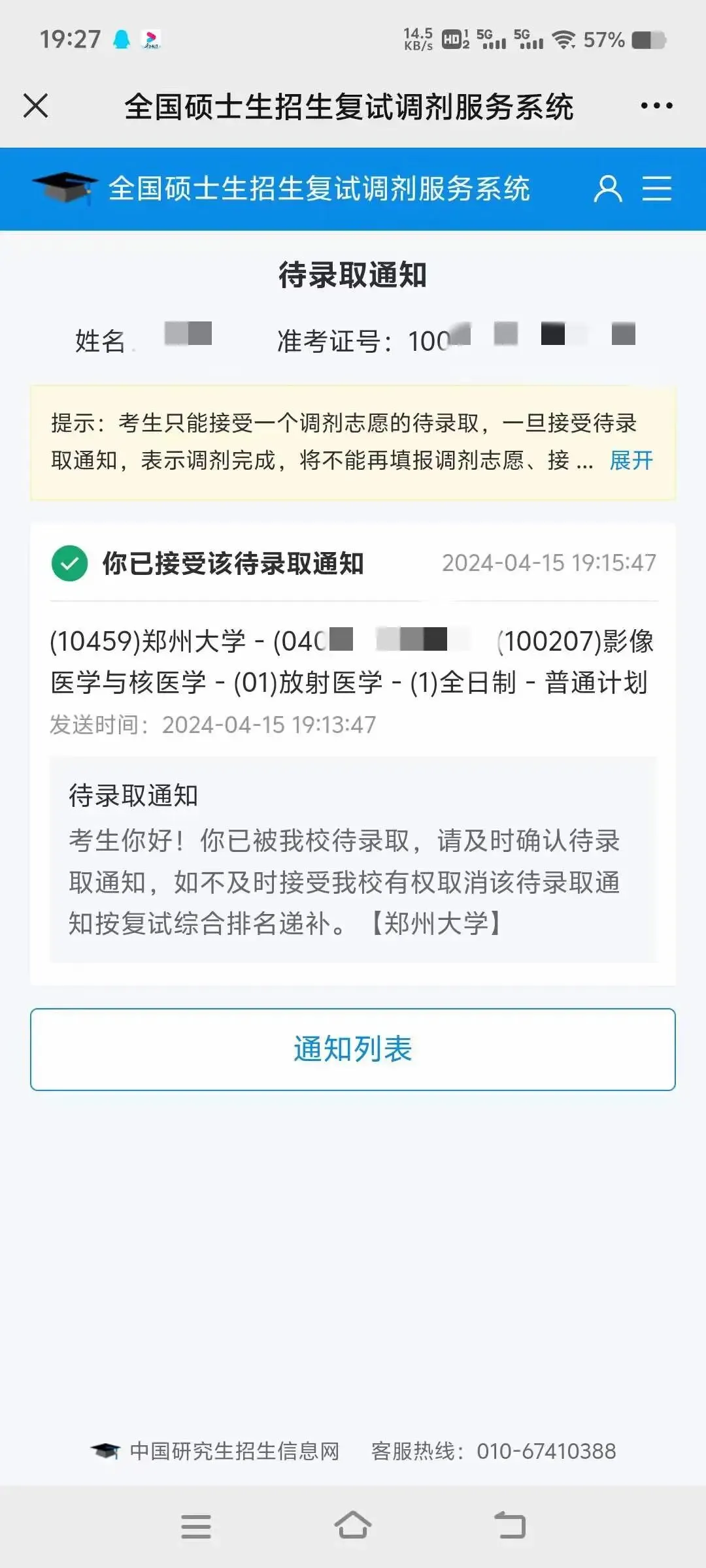 初试340+ 调剂录取 郑州大学影像医学与核医学