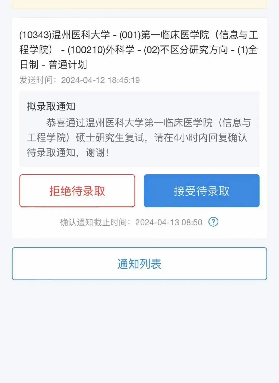 初试360+ 调剂录取 温州医科大学第一附属医院外科学