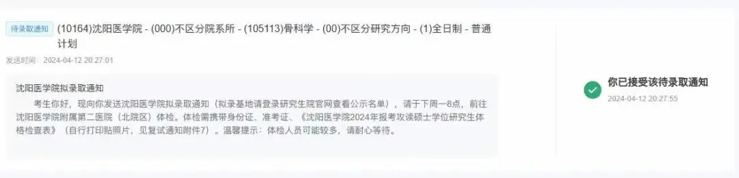 初试340+ 调剂录取 沈阳医学院骨科学专硕