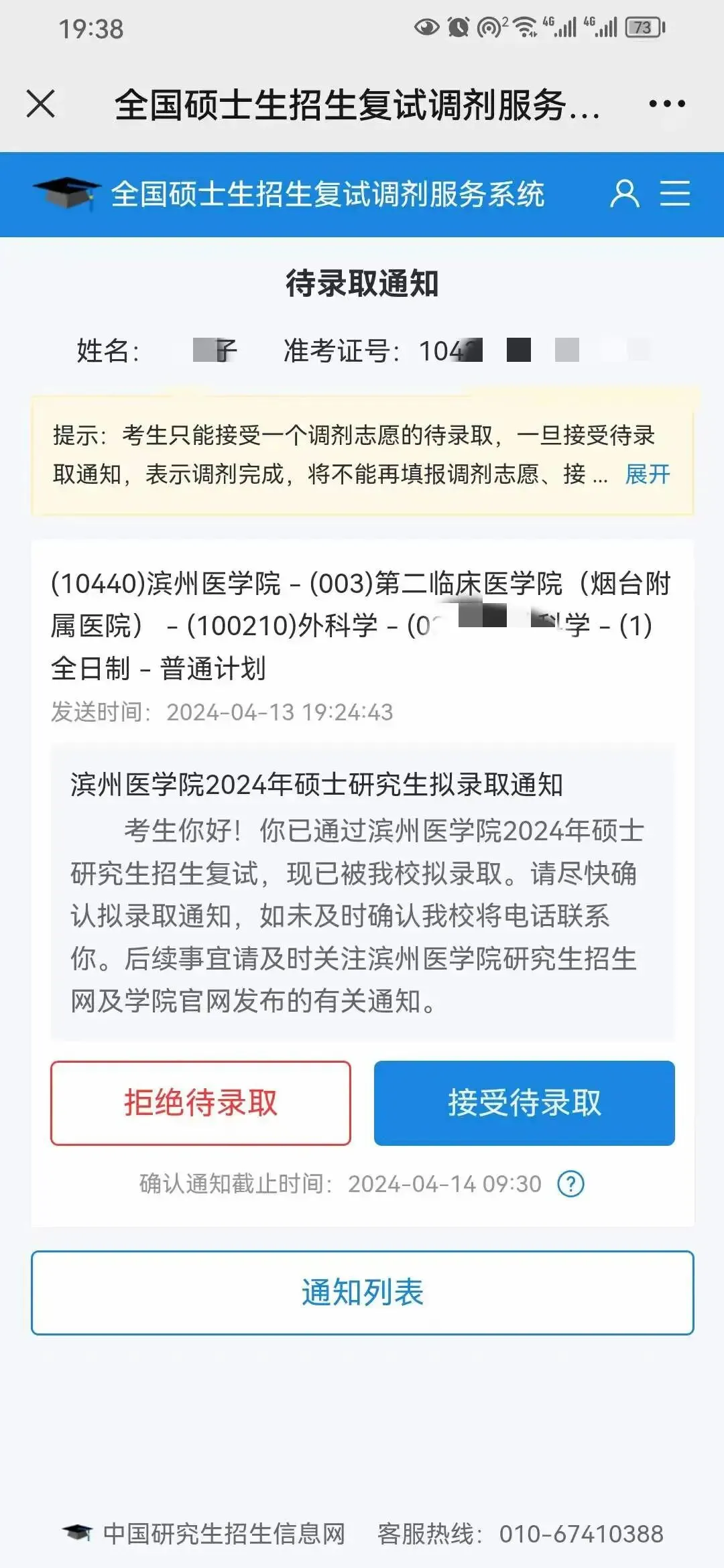 初试310+ 调剂录取 滨州医学院第二临床医学院外科学
