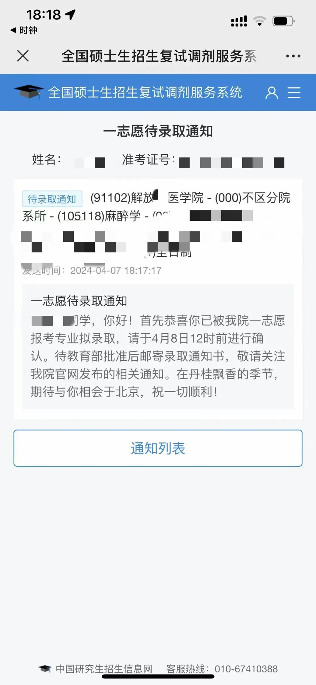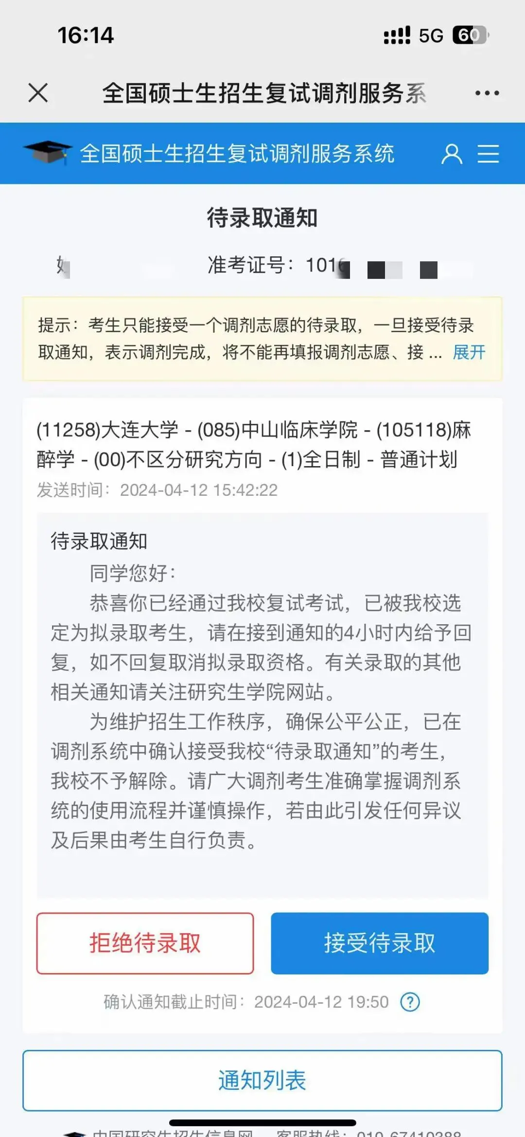 初试340+ 调剂录取大连大学中山临床医学院麻醉学专硕