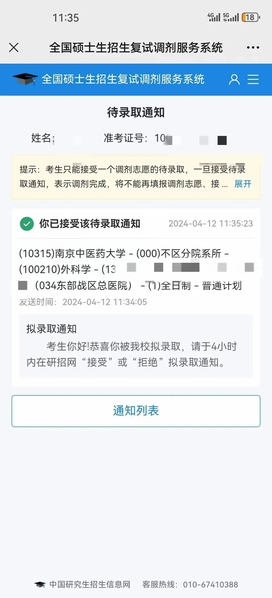 初试320+ 调剂录取 南京中药大学附属东部战区总医院 外科学