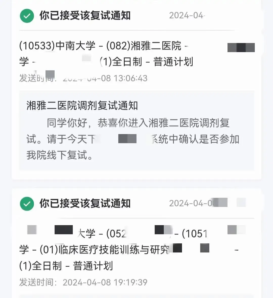 初试370+调剂录取 中南大学湘雅二医院 临床医学某二级学科