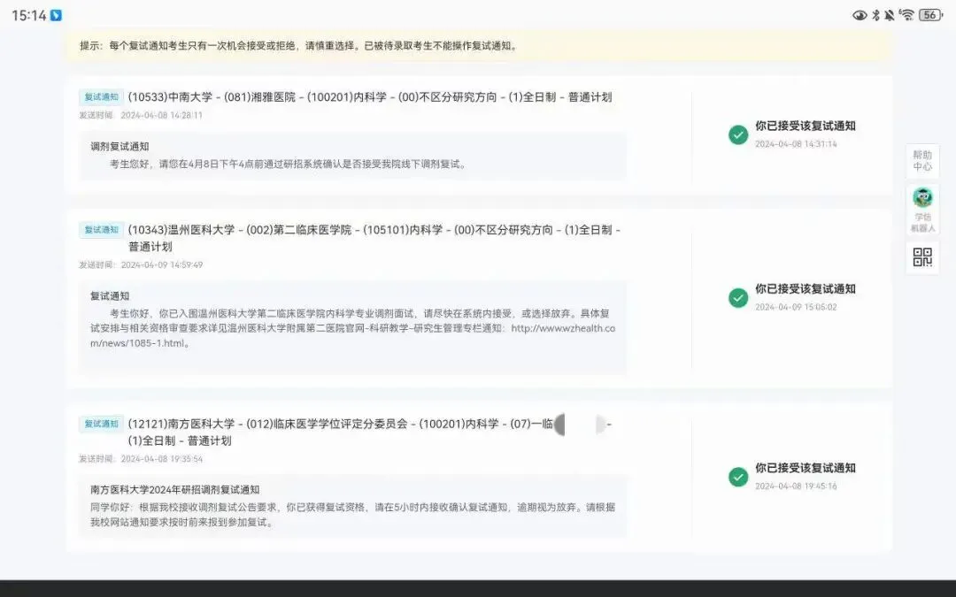 初试380+ 调剂录取中南大学湘雅医院内科学