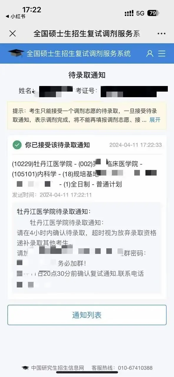 初试340+ 调剂录取 牡丹江医学院内科学专硕