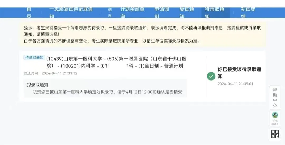 初试390+ 调剂录取 中国医科大学第一附属医院内科学